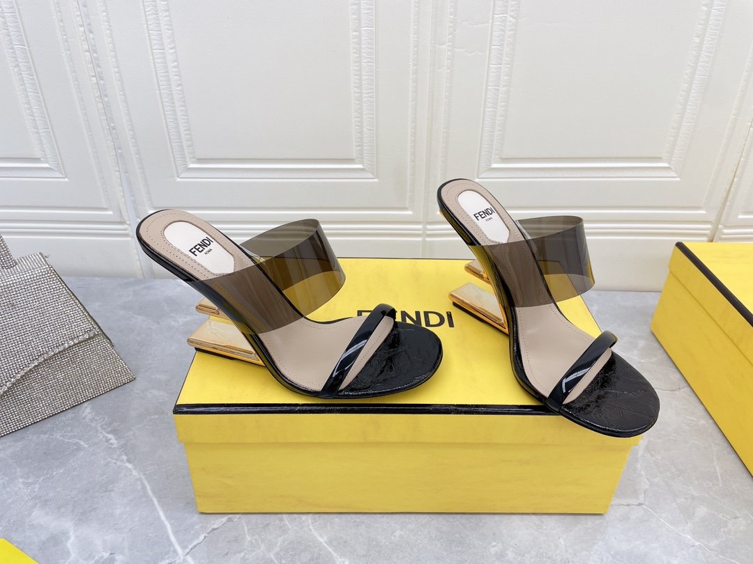 Fendi First 女式黑色透明高跟凉鞋