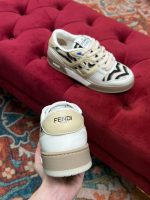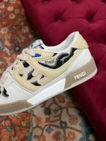 Fendi Match 系带运动鞋。米色材质。白色和黑色以及千鸟格面料细节。橡胶鞋底,侧面印有 Fendi 字样。