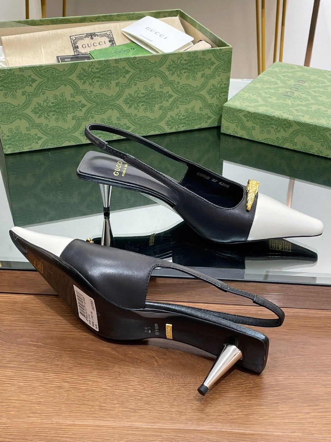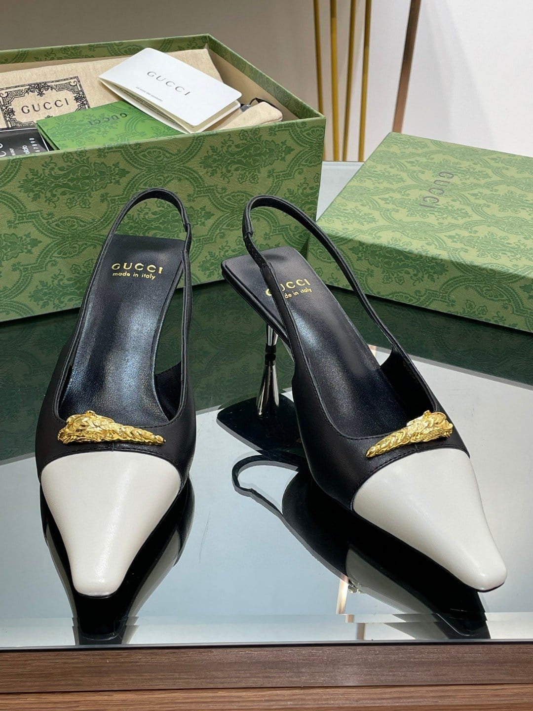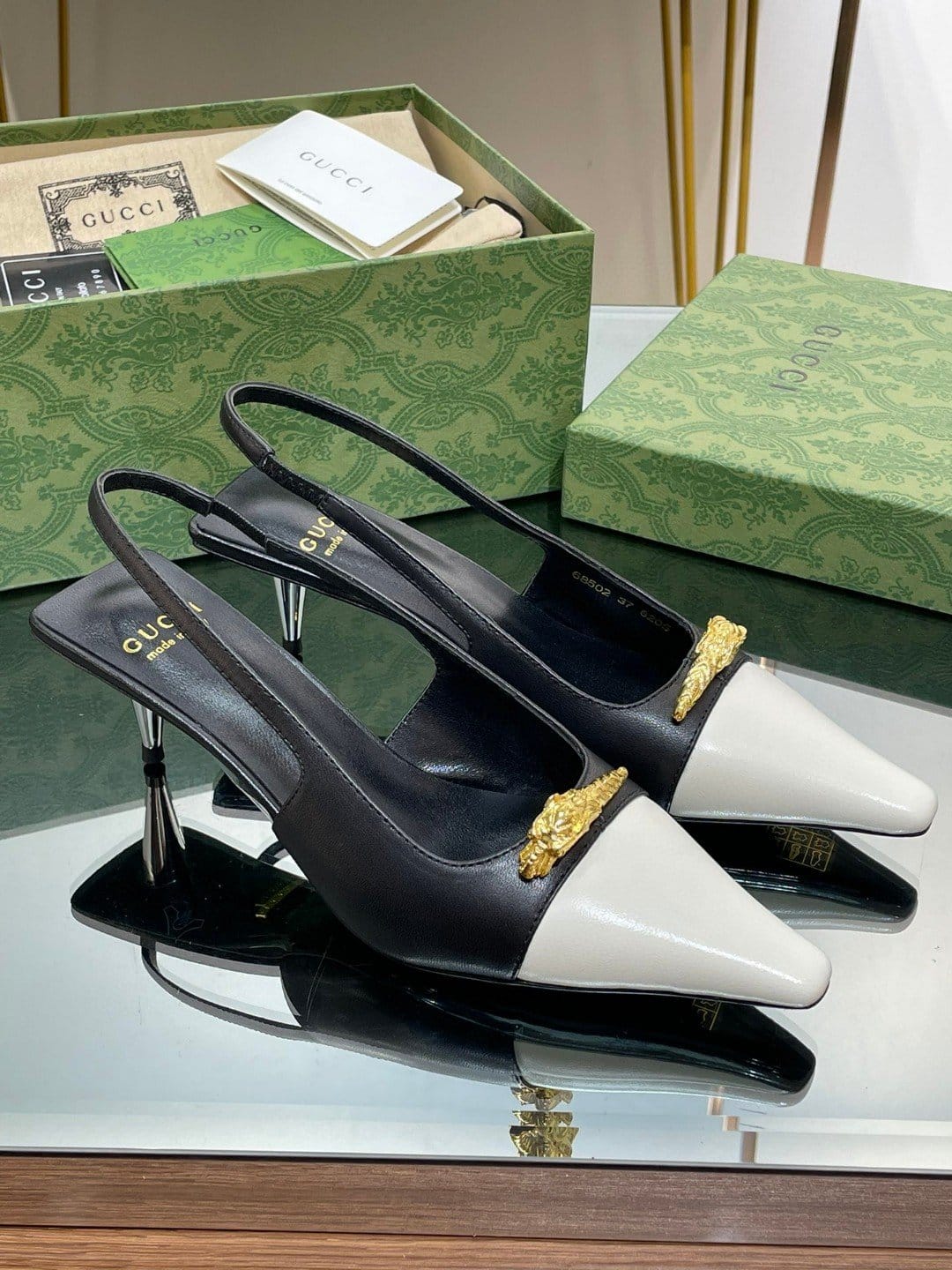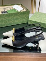 Gucci Gg 双色露跟中跟高跟鞋白色和黑色