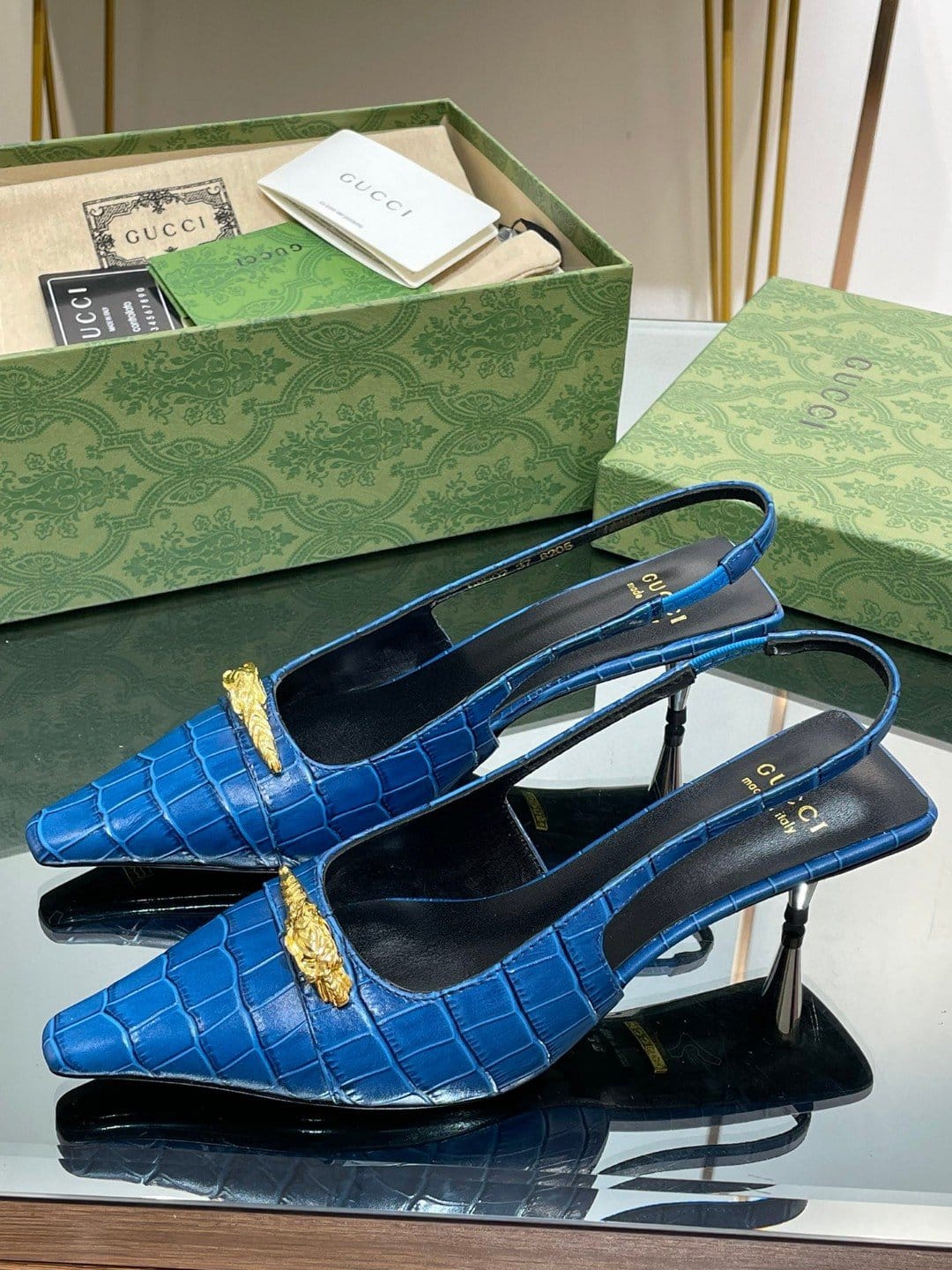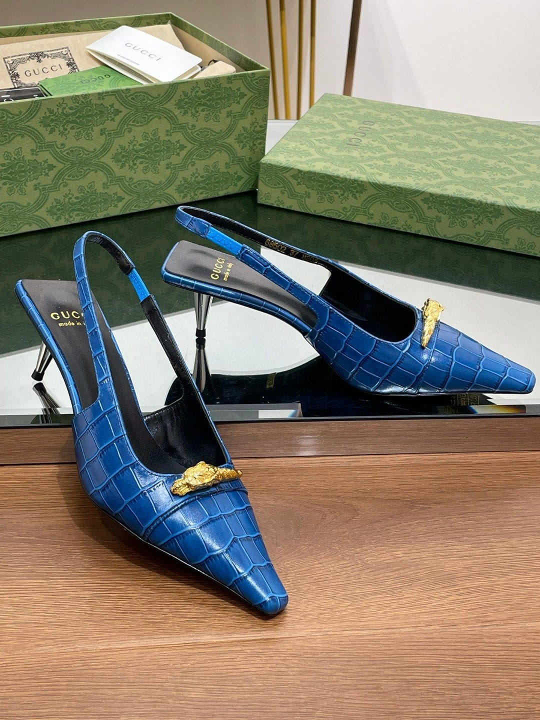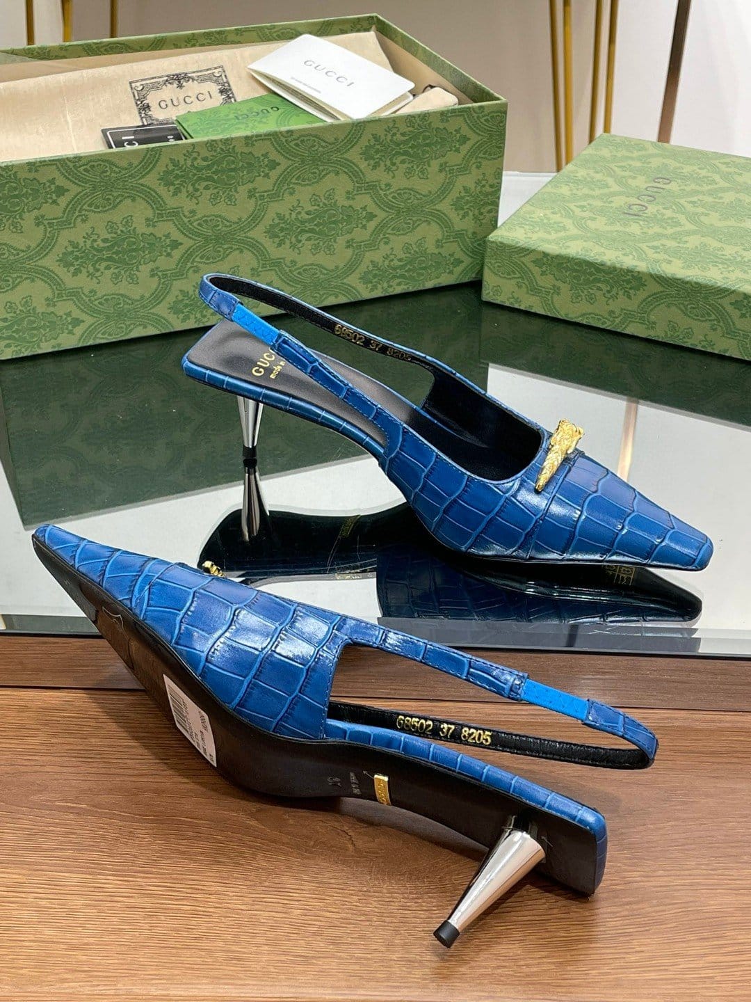 Gucci Gg 露跟中跟高跟鞋蓝色