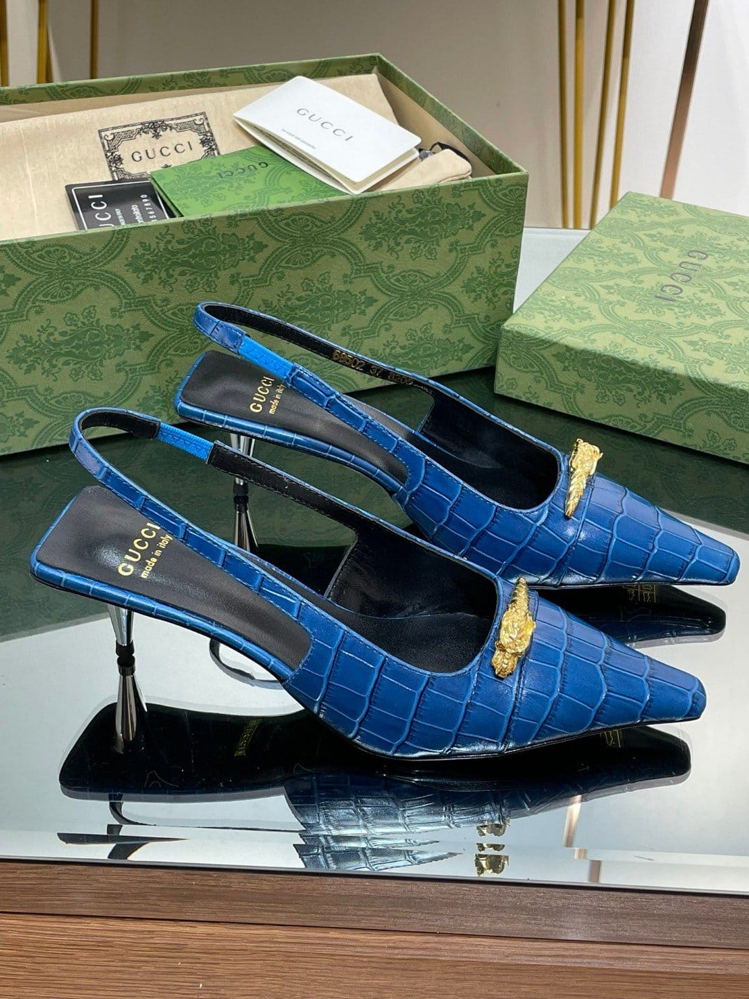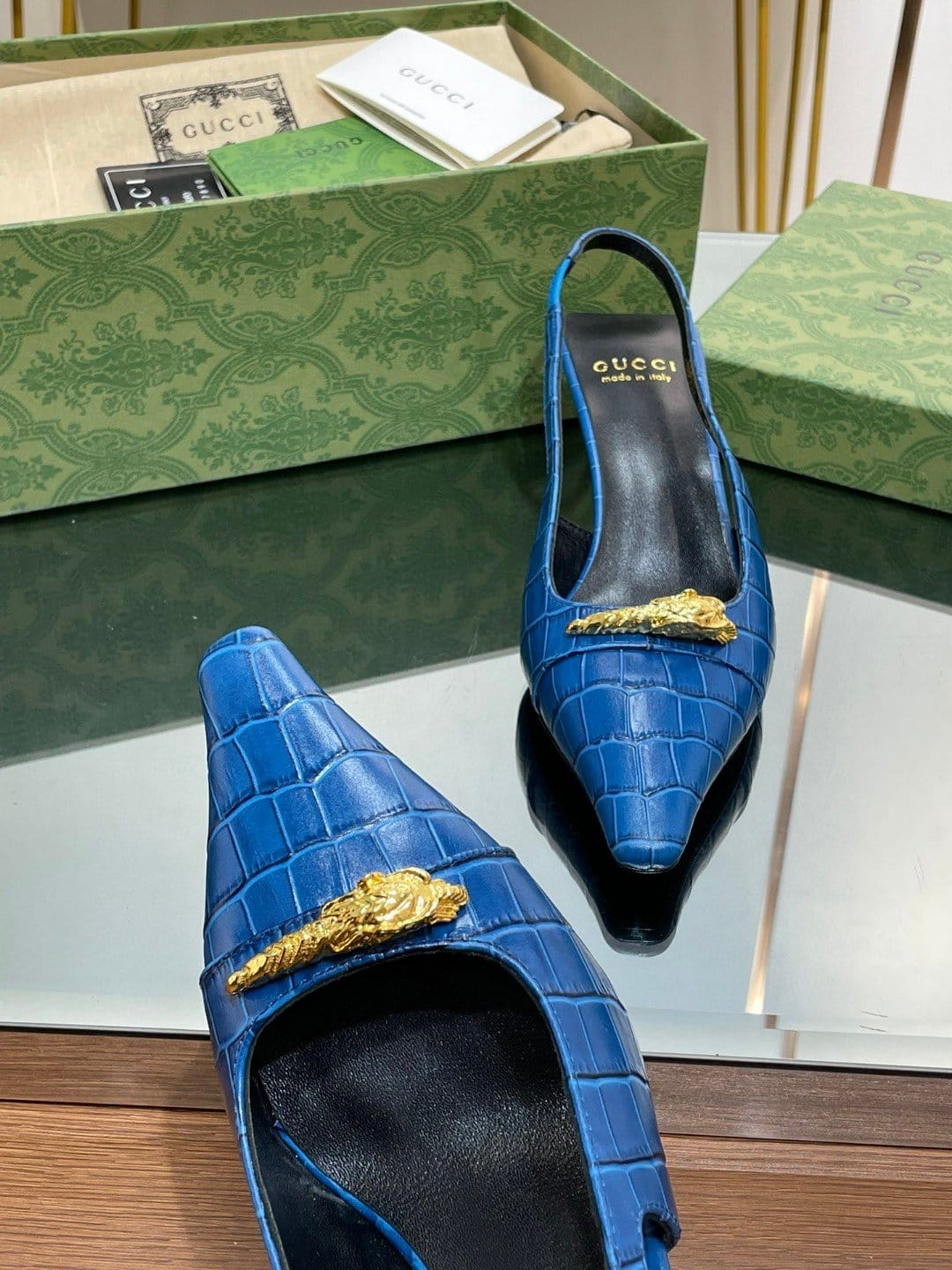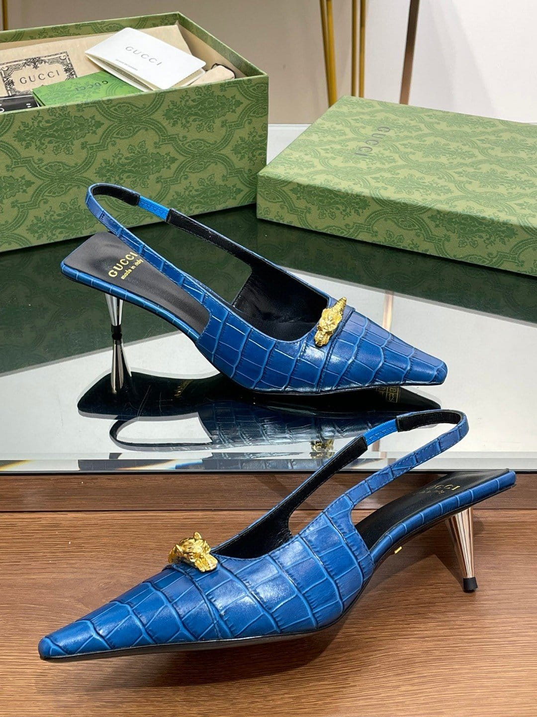 Gucci Gg 露跟中跟高跟鞋蓝色
