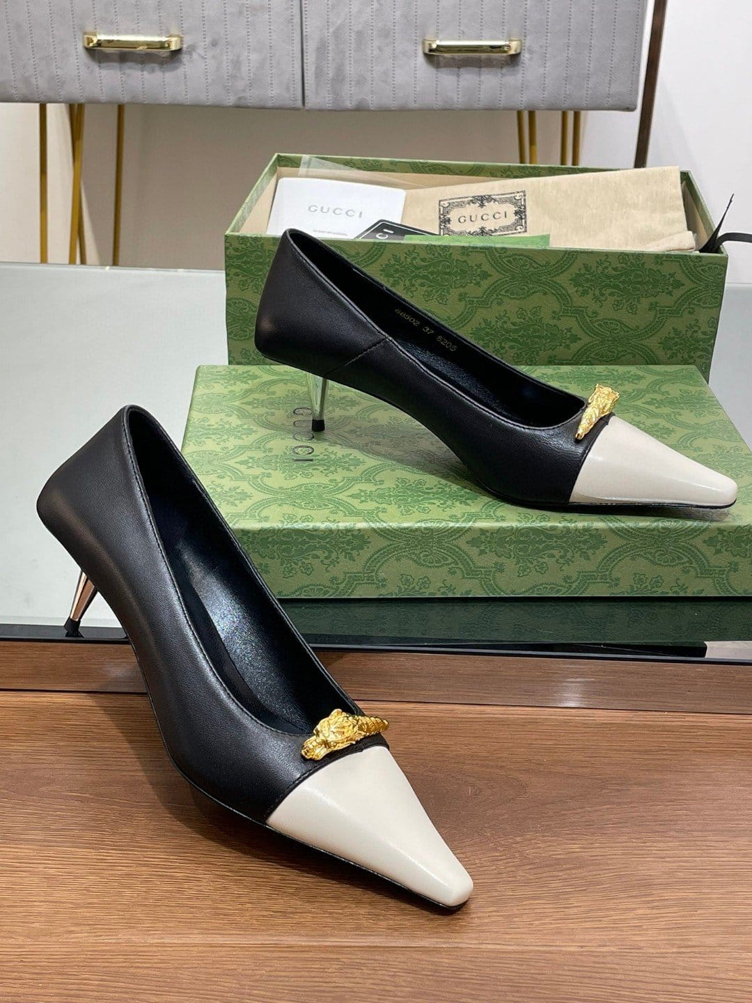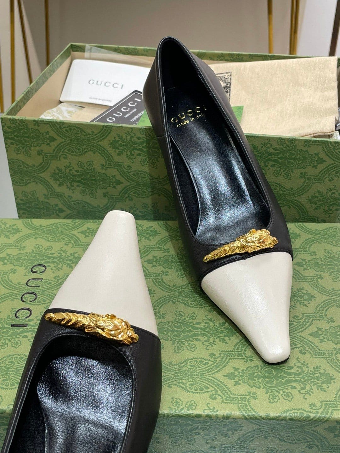 Gucci Gg 白色和黑色双色中跟高跟鞋