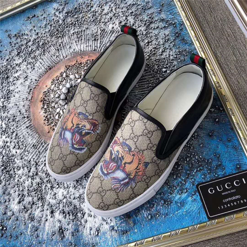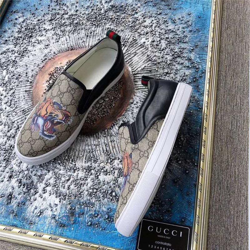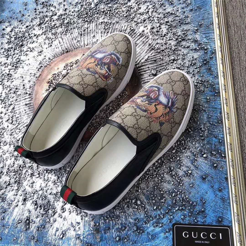 Gucci男鞋 古驰鞋子 进口牛皮 全手工 Gucci专用面料 虎头印花
