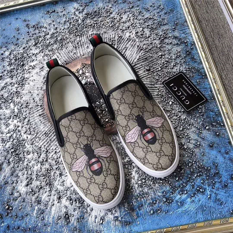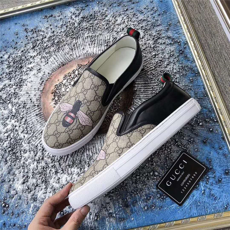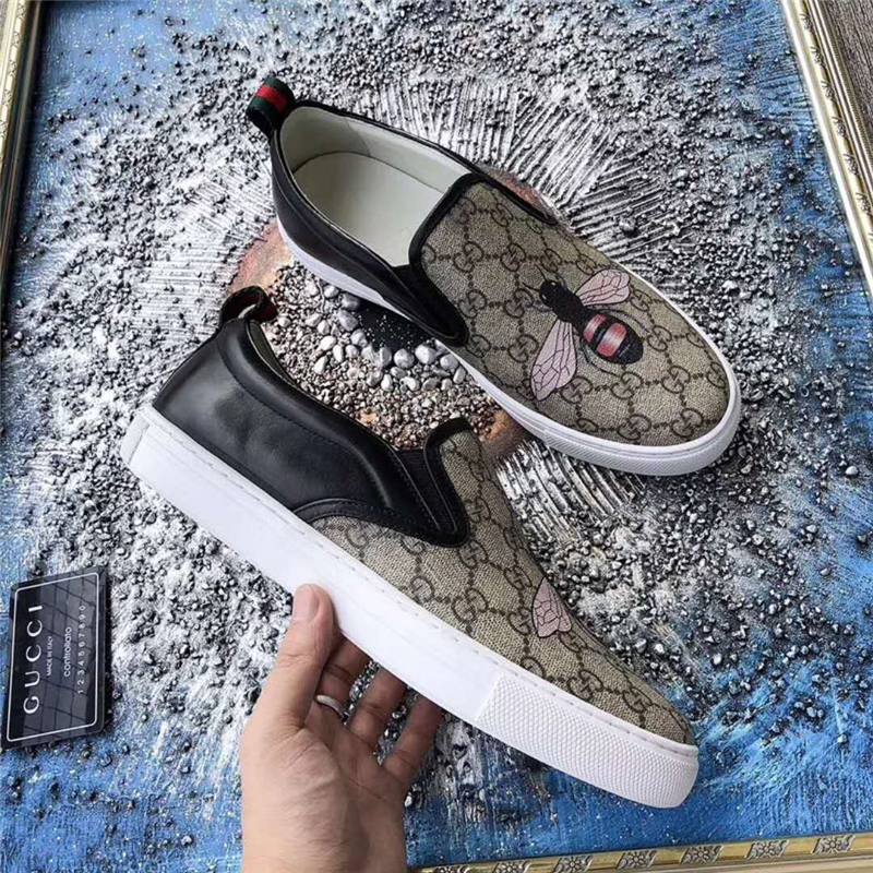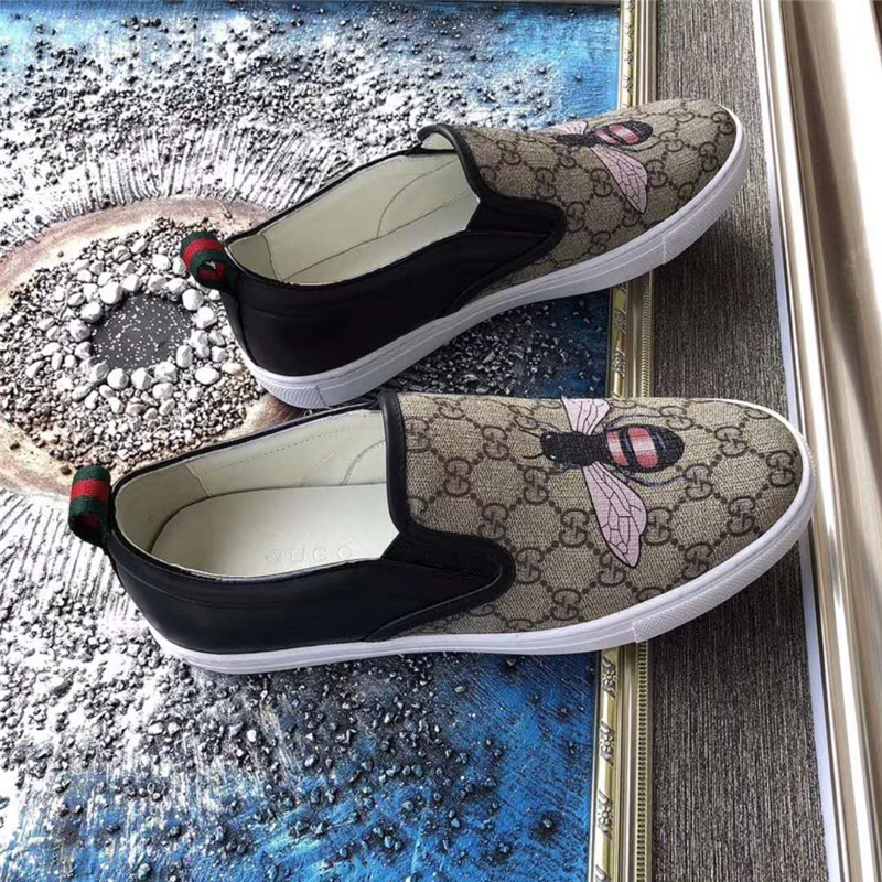 - Gucci男鞋 古驰鞋子 进口牛皮 全手工 Gucci专用面料 蜜蜂印花