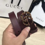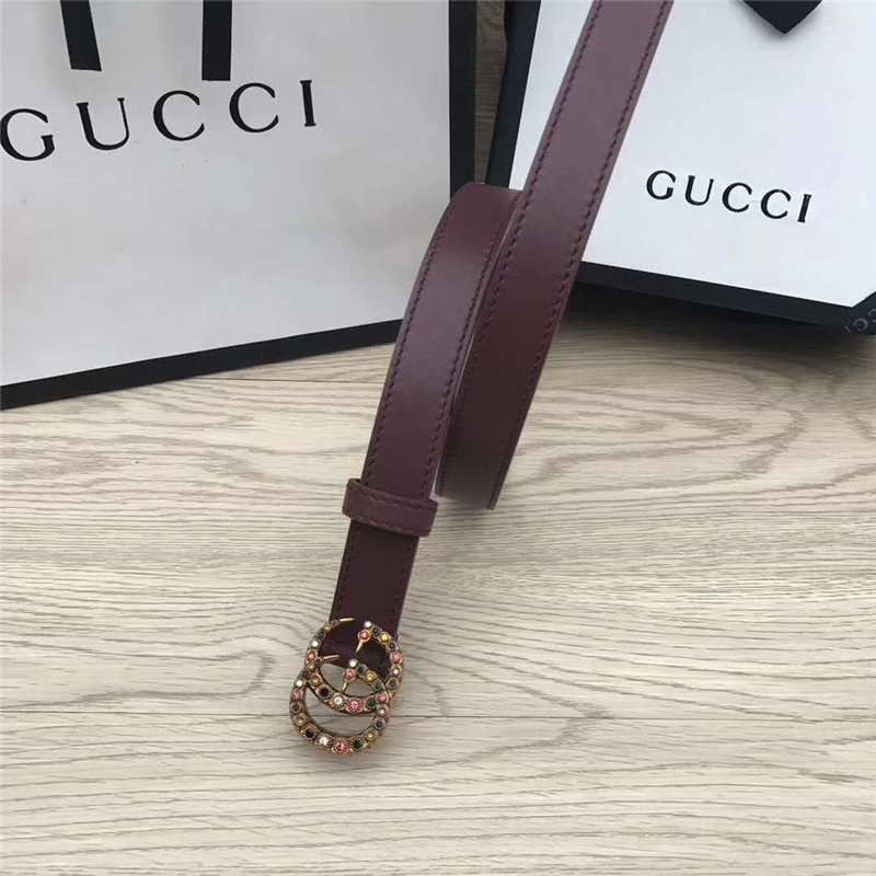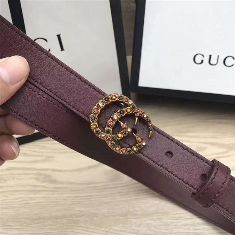 - GUCCI皮带 头层牛皮 七彩水晶古铜扣 GUCCI腰带 女士皮带 棕色