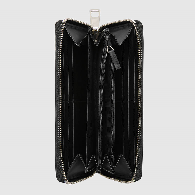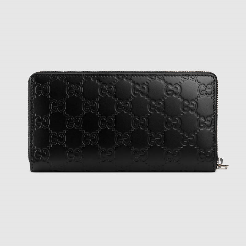 - 详细介绍:全拉链式皮夹,采用热压技术的Gucci Signature皮革制成,触感厚实,印花图案清晰分明。中心饰有GG金属细节,反光中衬出Gucci Signature图案。黑色Gucci Signature皮革,配以黑色皮革细节,金属GG细节,12个卡片隔层和3个钞票隔层,拉链零钱袋