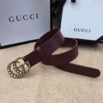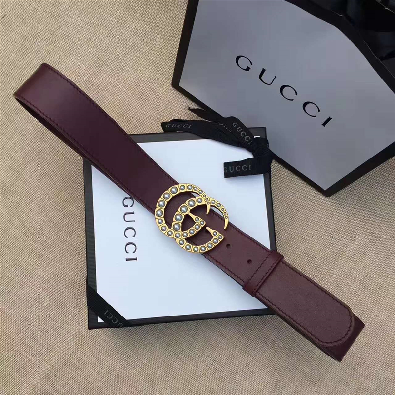 Gucci 原版牛皮搭配原单仿古铜珍珠双G扣头 腰带 彰显超凡品味 顶级精品 棕红色