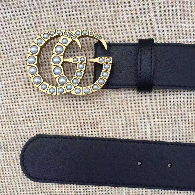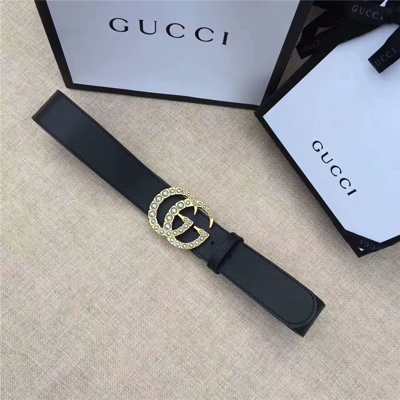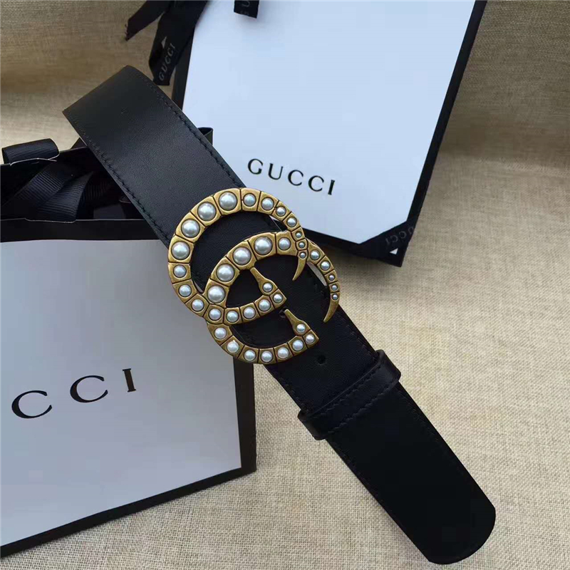 - Gucci 原版牛皮搭配原单仿古铜珍珠双G扣头 腰带 彰显超凡品味 顶级精品 黑色