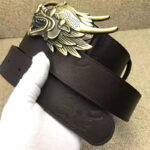 - GUCCI 古奇新款 双面进口平纹头层牛皮 抛光仿古铜 金属扣头 棕色