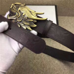 GUCCI 古奇新款 双面进口平纹头层牛皮 抛光仿古铜 金属扣头 棕色