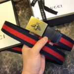 - Gucci 古驰 官网同步爆款 织带拼皮 男士腰带 蜜蜂带扣