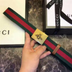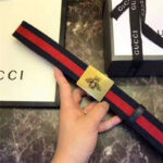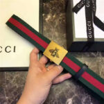 Gucci 古驰 官网同步爆款 织带拼皮 男士腰带 蜜蜂带扣