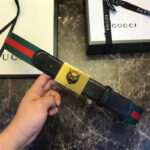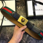 - Gucci 古驰 爆款 织带拼皮 虎头图案五金搭扣 男士腰带 红绿织带黑皮