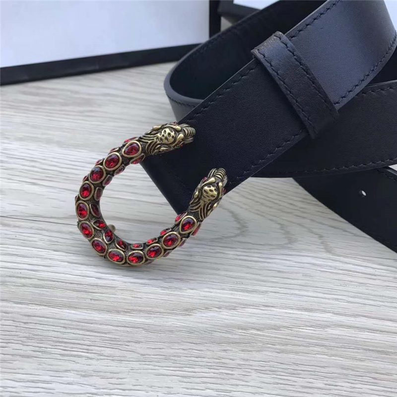 - GUCCI 古驰 2017畅销女款 双面进口平纹 头层牛皮 龙头花纹扣 黑带红钻金扣