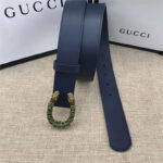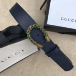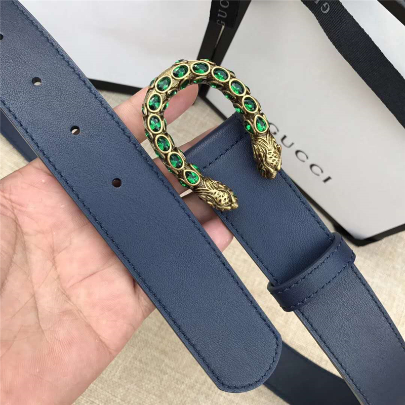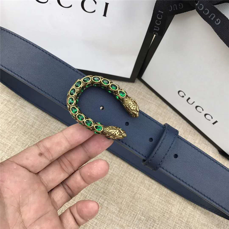 - GUCCI 古驰 2017畅销女款 双面进口平纹 头层牛皮 龙头花纹扣 蓝带绿钻金扣