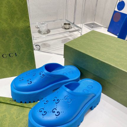GG 标志首次使用于 20 世纪 70 年代,是 1930 年代原始 Gucci 菱形设计的演变,从那时起这是 Gucci 传统的既定象征,每一季都在演变。在这里,字母组合以剪裁图案出现在这些黄色橡胶凉鞋上。