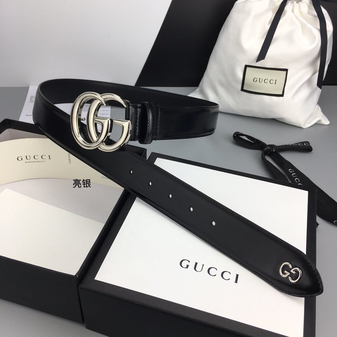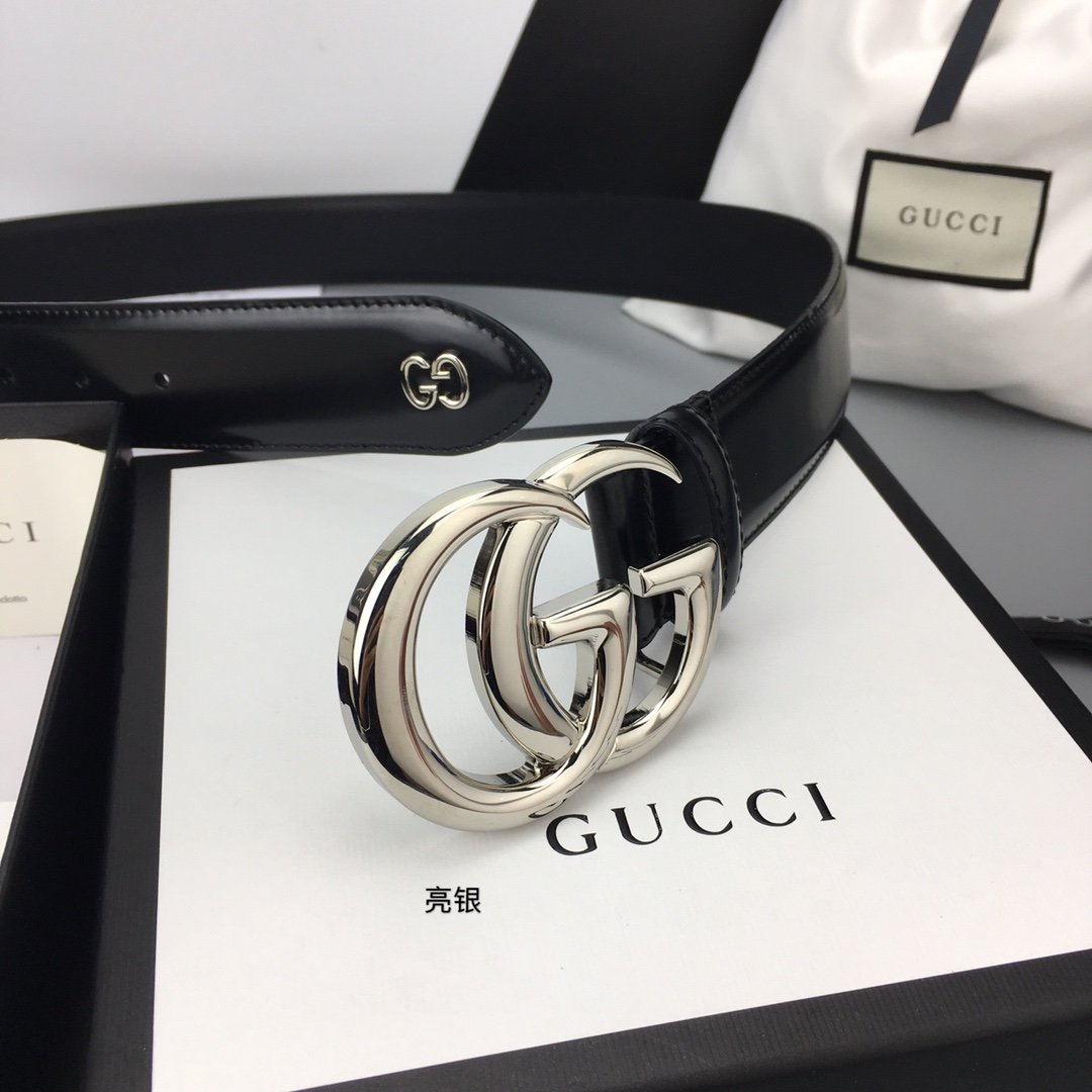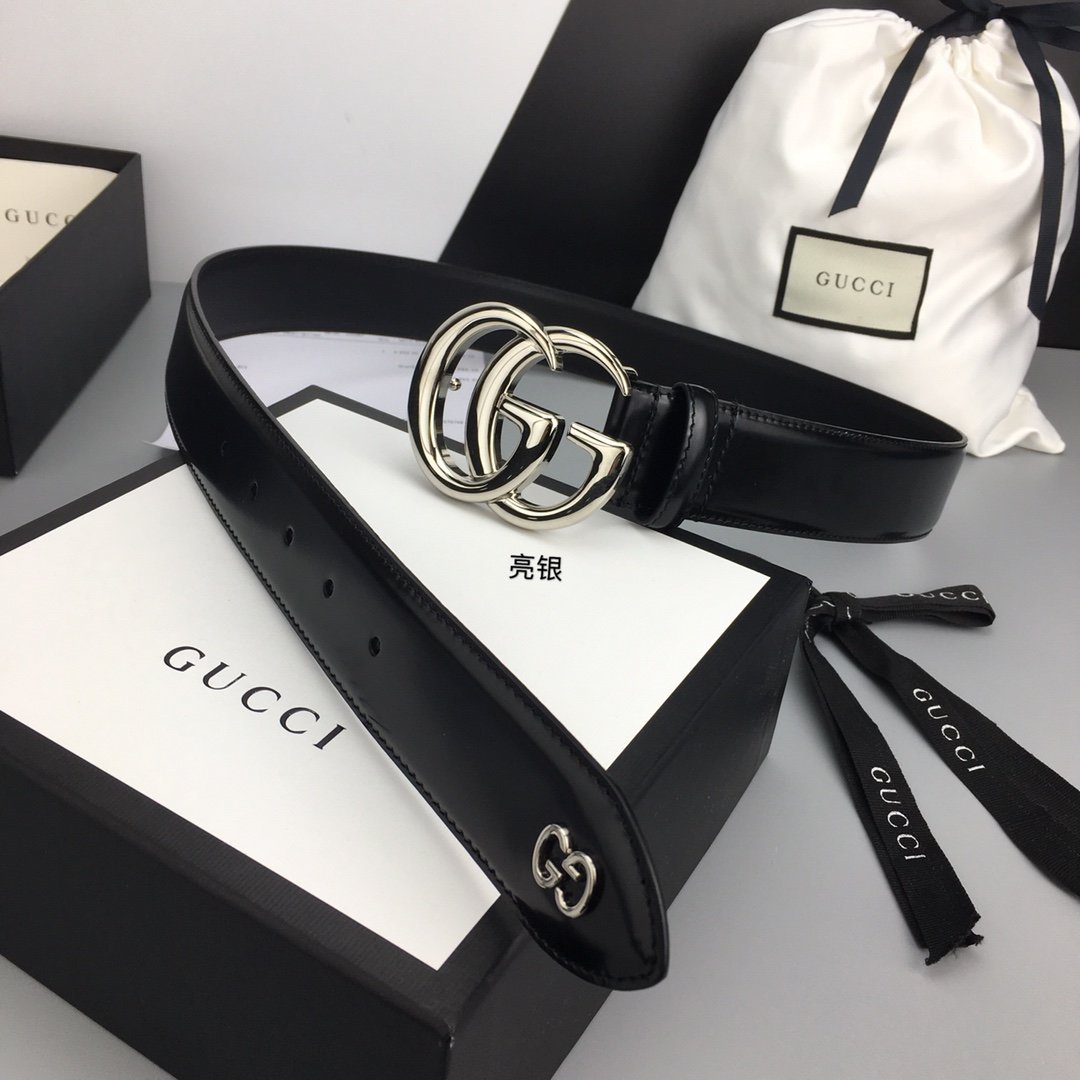 Gucci 女士双 G 带扣黑色腰带,女士腰带