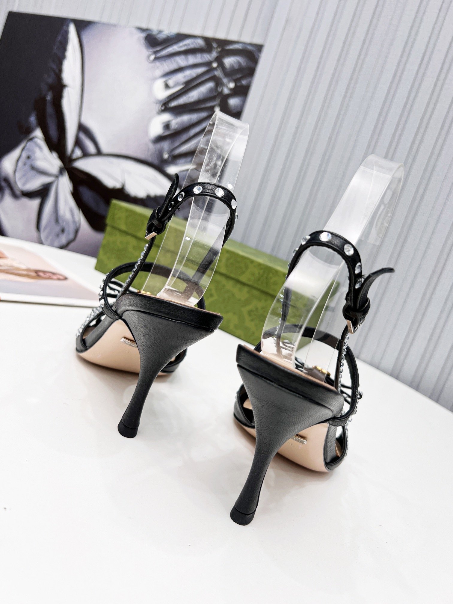 Gucci 女式 GG 水晶黑色女式凉鞋