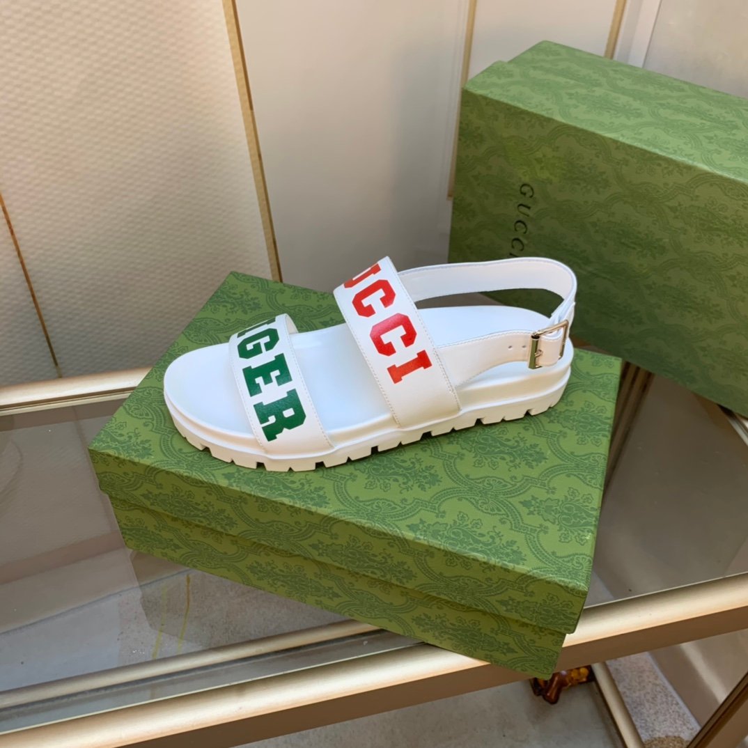 Gucci 女士老虎搭扣凉鞋 白色 GG