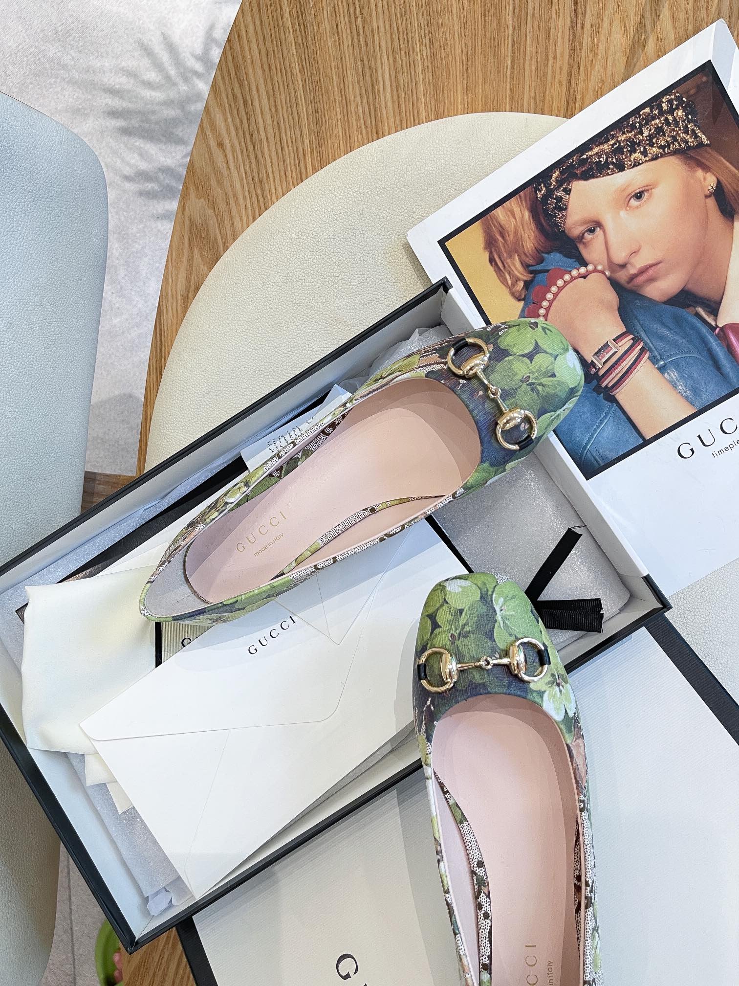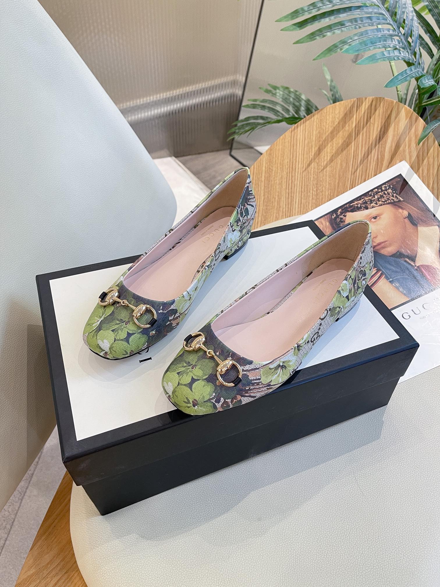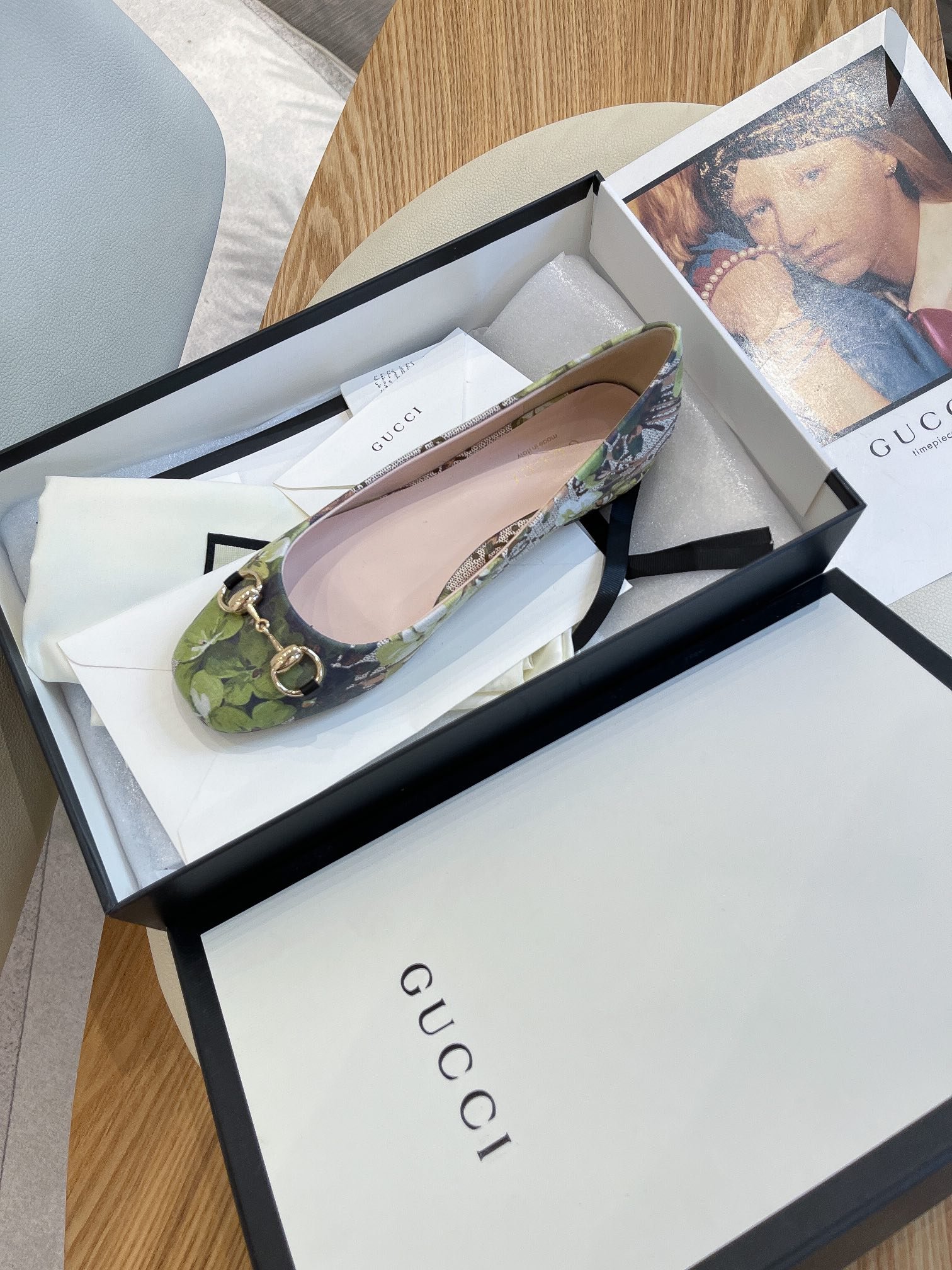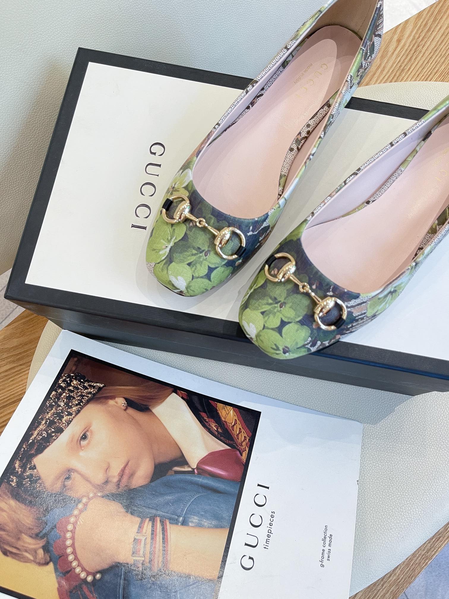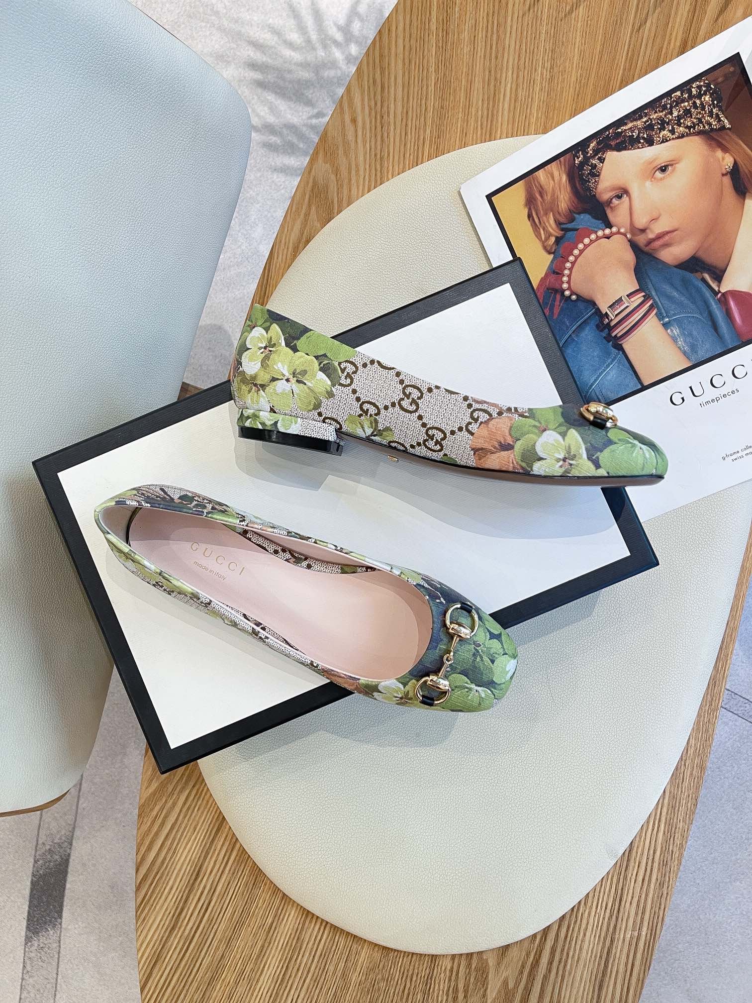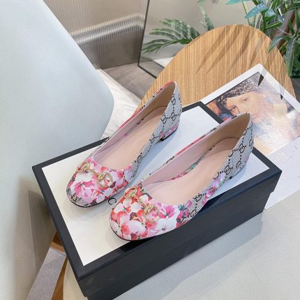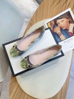 Gucci 女式花朵芭蕾平底鞋,带马衔扣灰色女式 GG