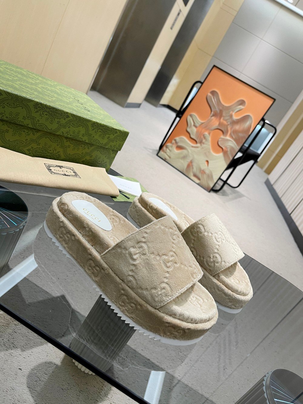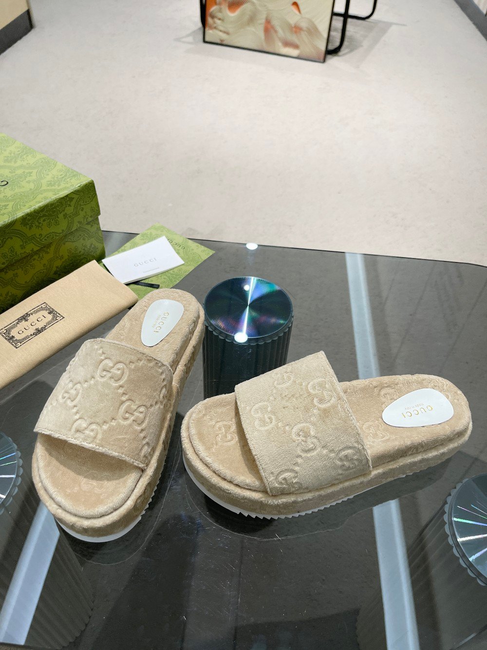 Gucci 女式 GG 厚底凉鞋 米色 GG 女式