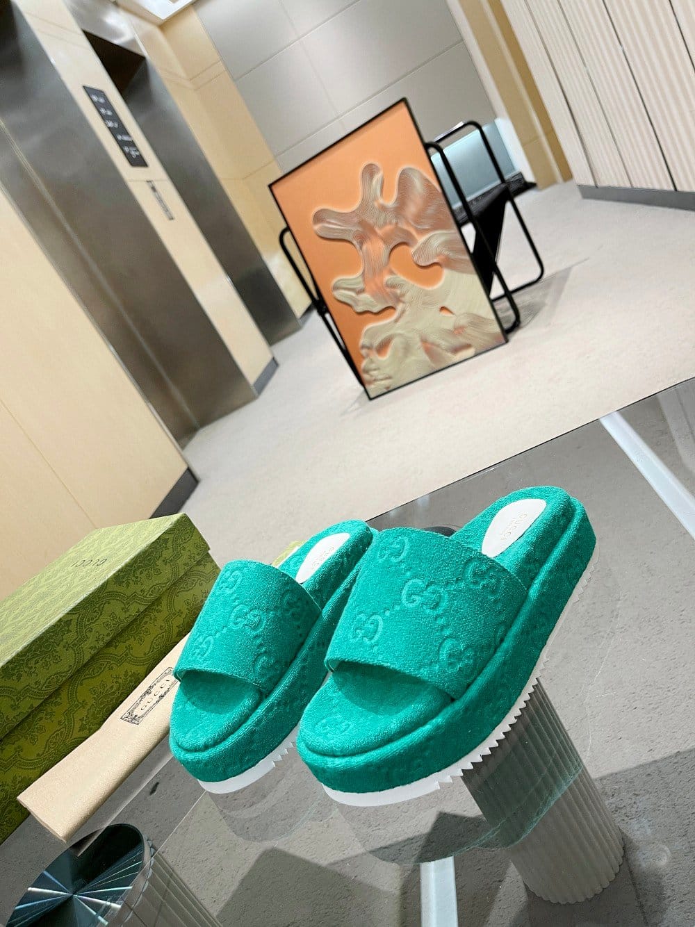 Gucci 女士 GG 厚底凉鞋 绿松石色 女士 GG