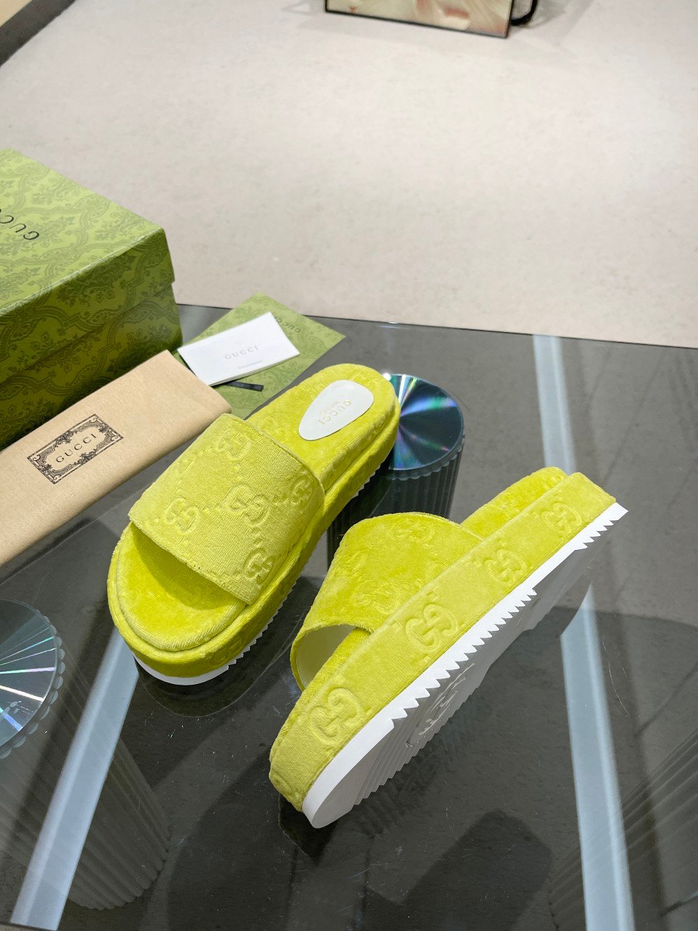 Gucci 女士 GG 厚底凉鞋 黄色 女士 GG
