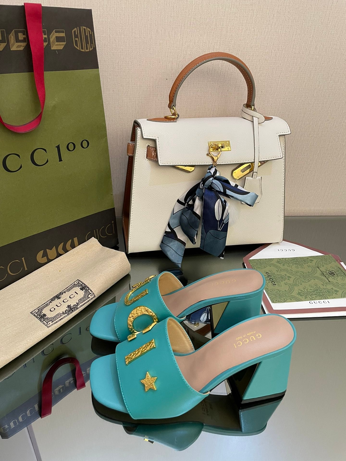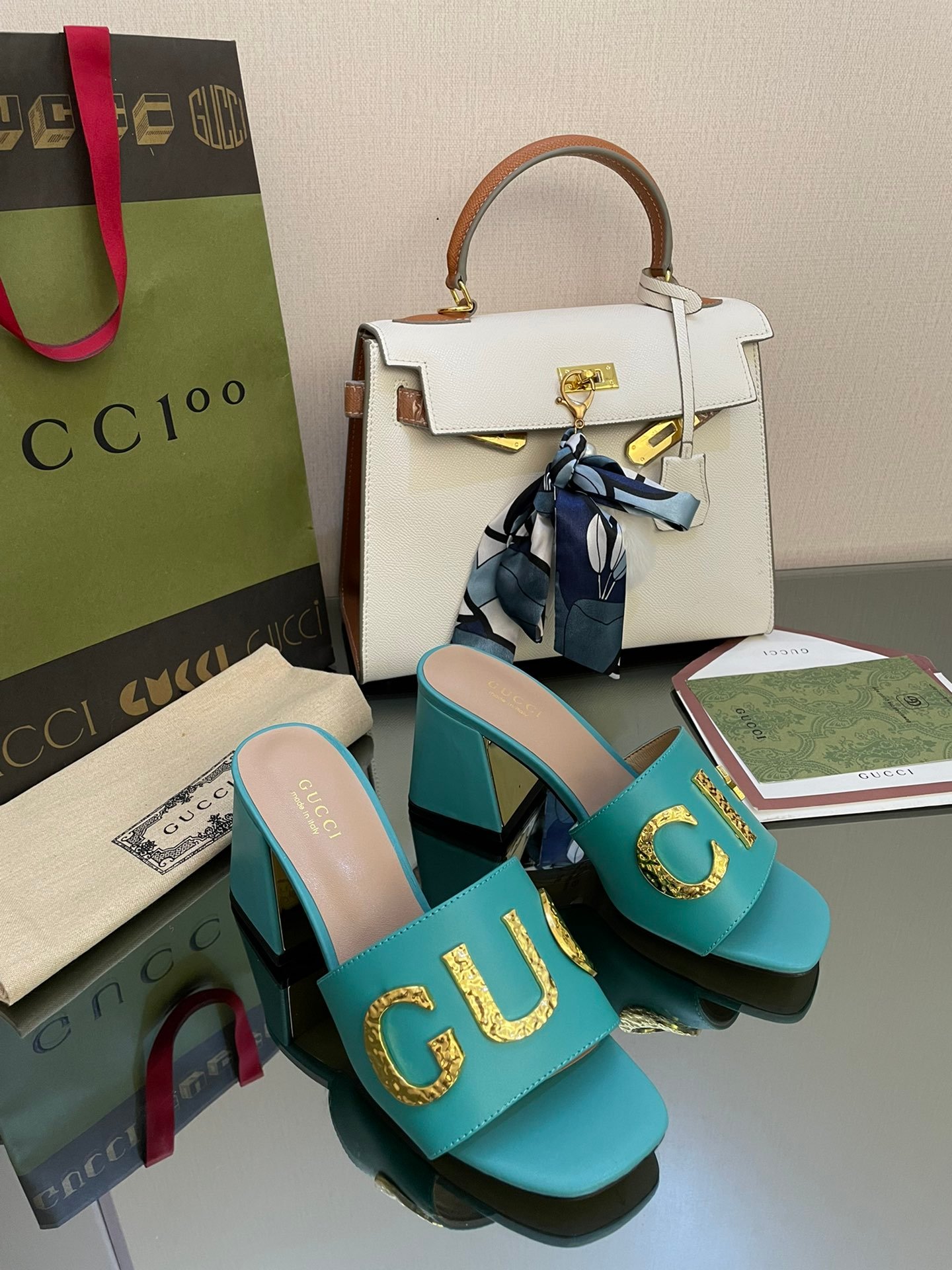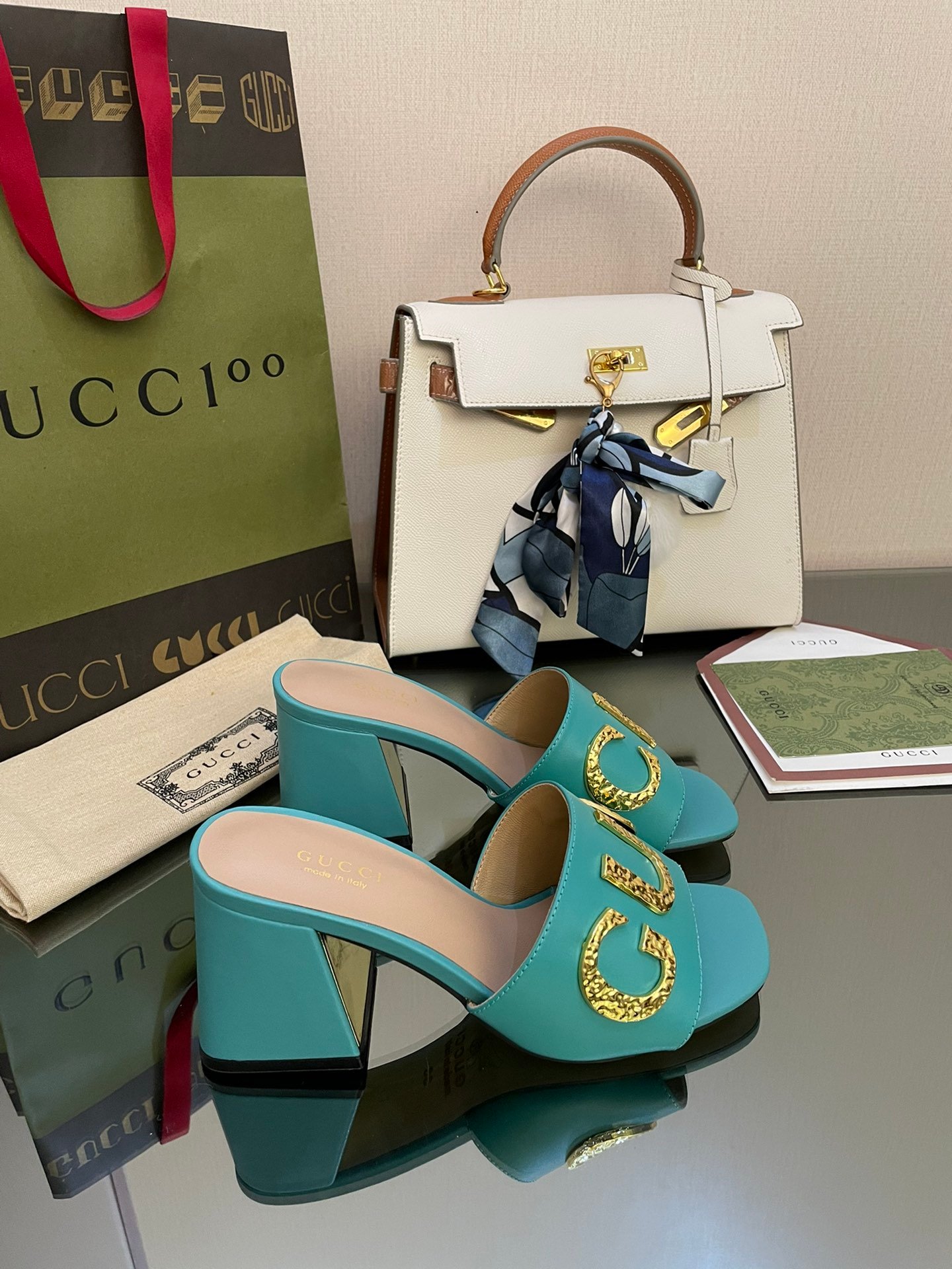 Gucci 女士 GG ‘Gucci’ 拖鞋翡翠绿凉鞋