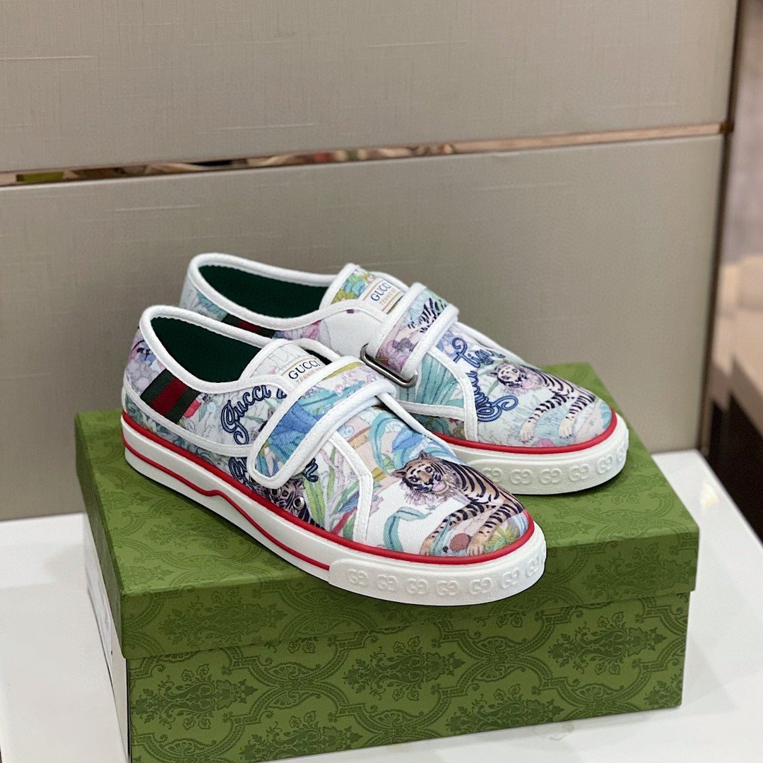 Gucci 女式网球 1977 运动鞋,虎白蓝女式 676092