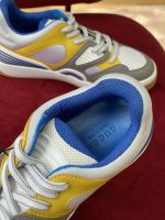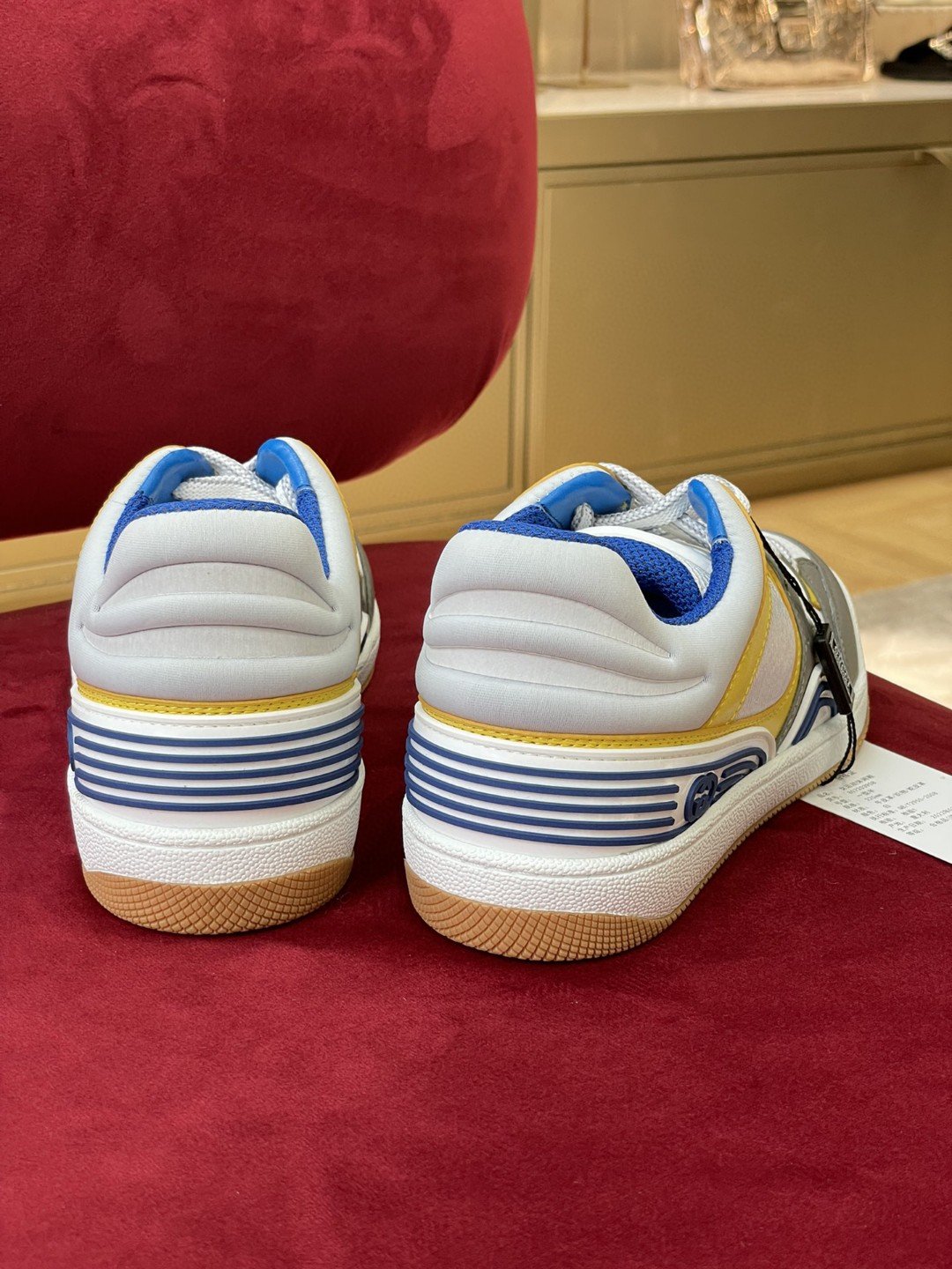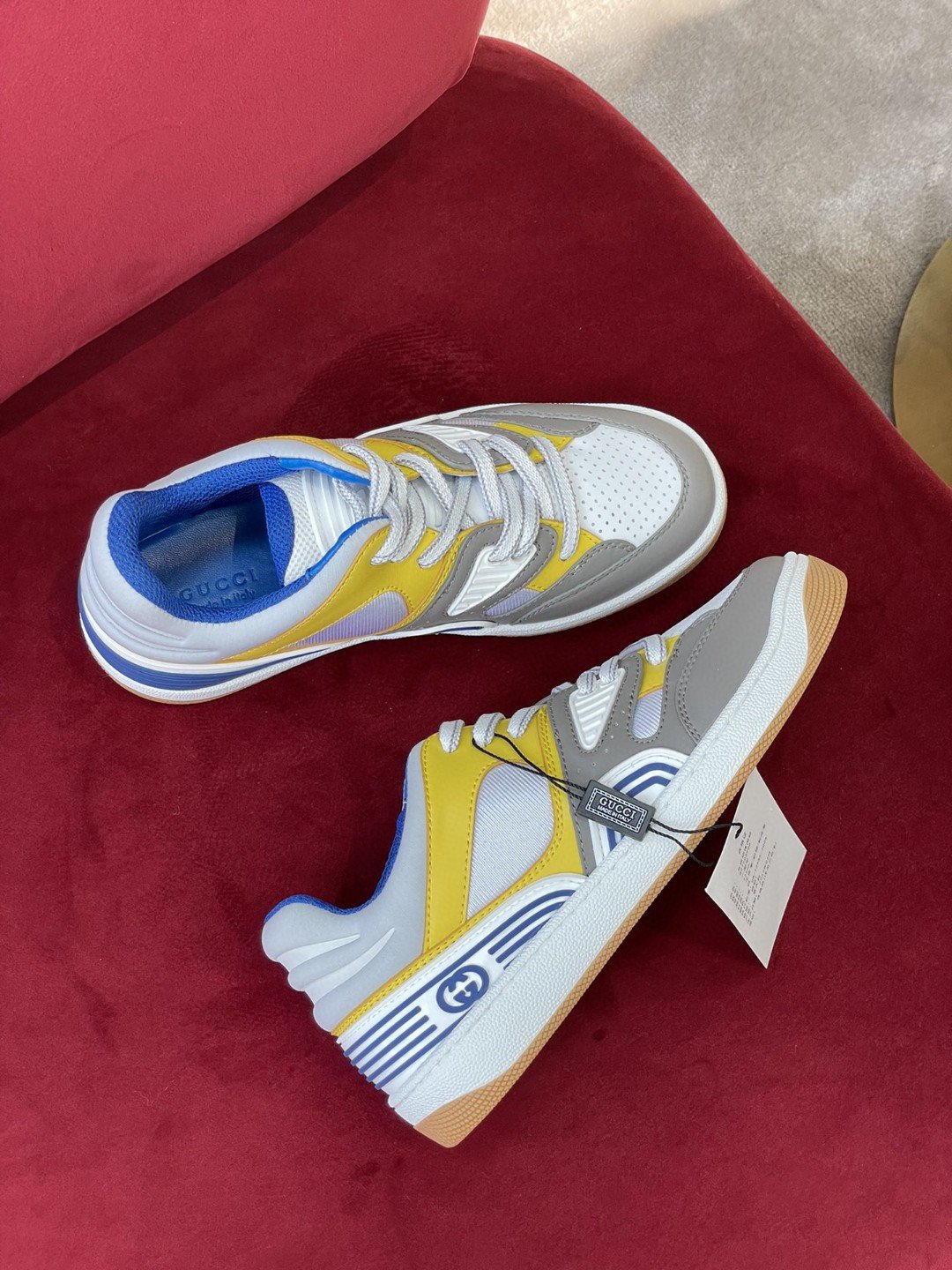 品牌更新了 Gucci Basket 运动鞋系列,运动外观灵感源自 90 年代的篮球鞋。融入品牌标志这些运动鞋的元素和细节体现了在球场上表达自我的设计美学。这款鞋主要由可持续材料 Demetra 制成,混合了颜色和饰面,具有轻微磨损的效果。这种新材料采用了类似于鞣制的工艺技术,使其柔软且具有延展性。这种环保材料主要源自可持续、可再生和生物基来源,不含动物成分。