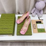 Gucci 女士马衔扣浅粉色中跟芭蕾平底鞋 女士 GG