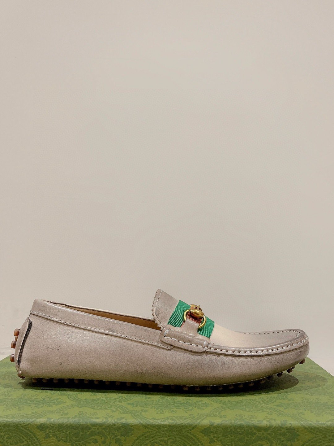 该螺丝刀采用黑色皮革制成,结构灵活,是对经典款式的重申。这款鞋融合了品牌标志性细节,以织带和带有彩色珐琅的 Interlocking G Horsebit 为特色。