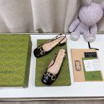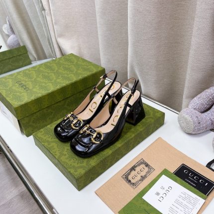Gucci 女式马衔扣露跟鞋 黑色 GG