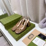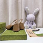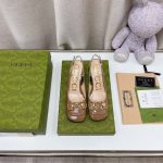 Gucci 女式马衔绿色中跟露跟鞋 GG