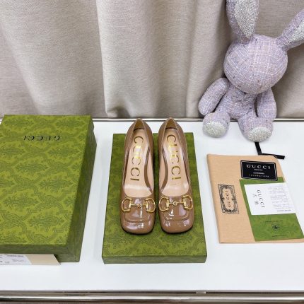 这款露跟浅口鞋带有复古元素,如方形鞋头和雕刻粗跟。马衔扣细节源自历史档案,将风格与品牌的马术根源联系起来。款式以绿色为主。