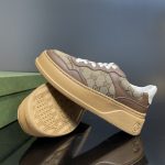 这款运动鞋采用厚实的廓形,巧妙运用形状、颜色和材质,营造出复古感觉。这款鞋采用米色和乌木色 Original GG 帆布制成,配有明确的橡胶鞋底,并带有同色系饰边。
