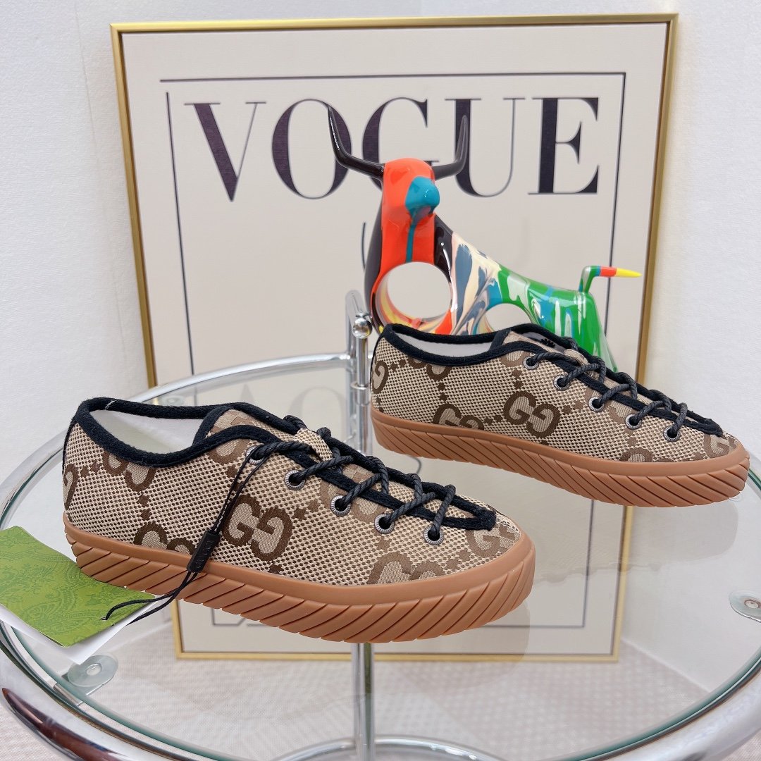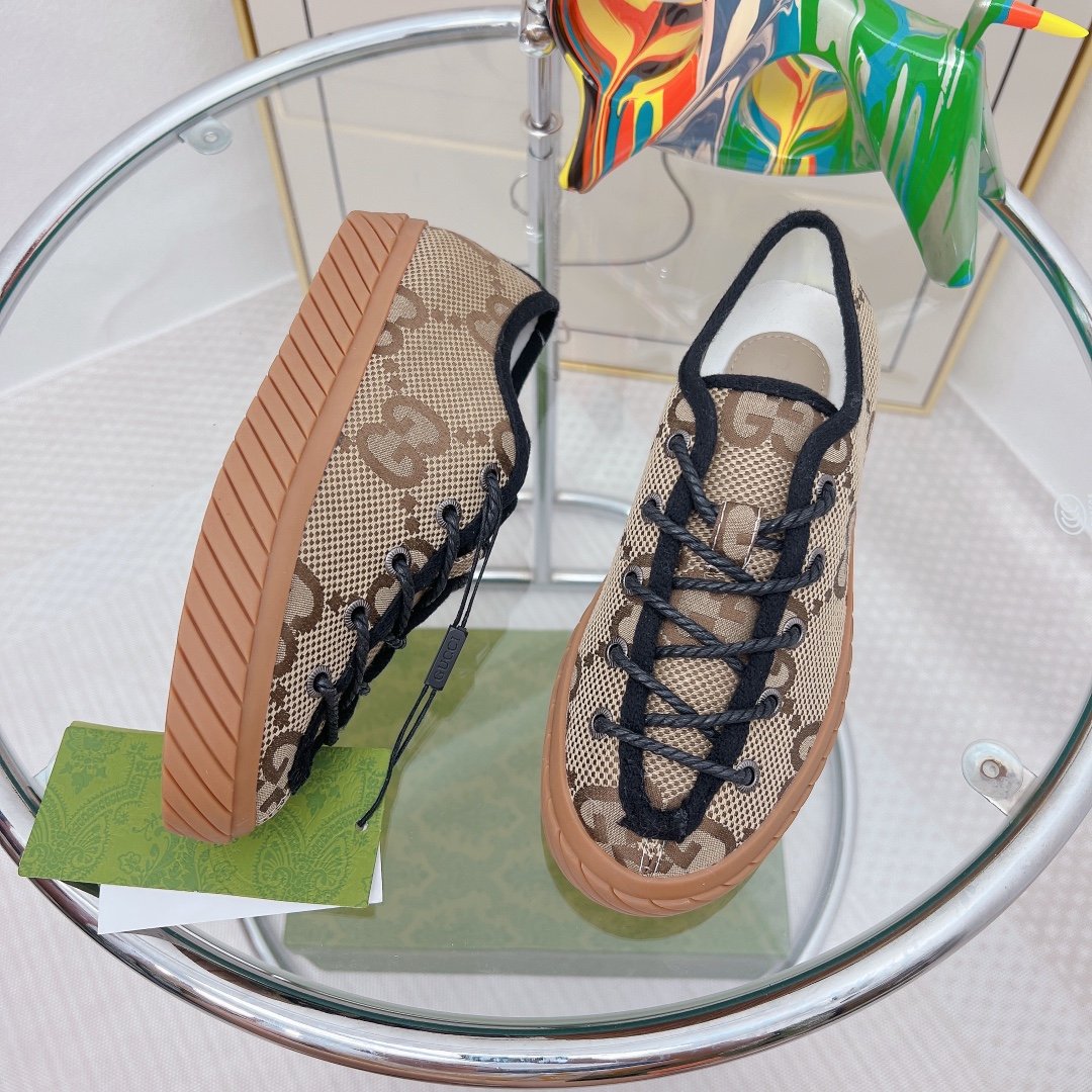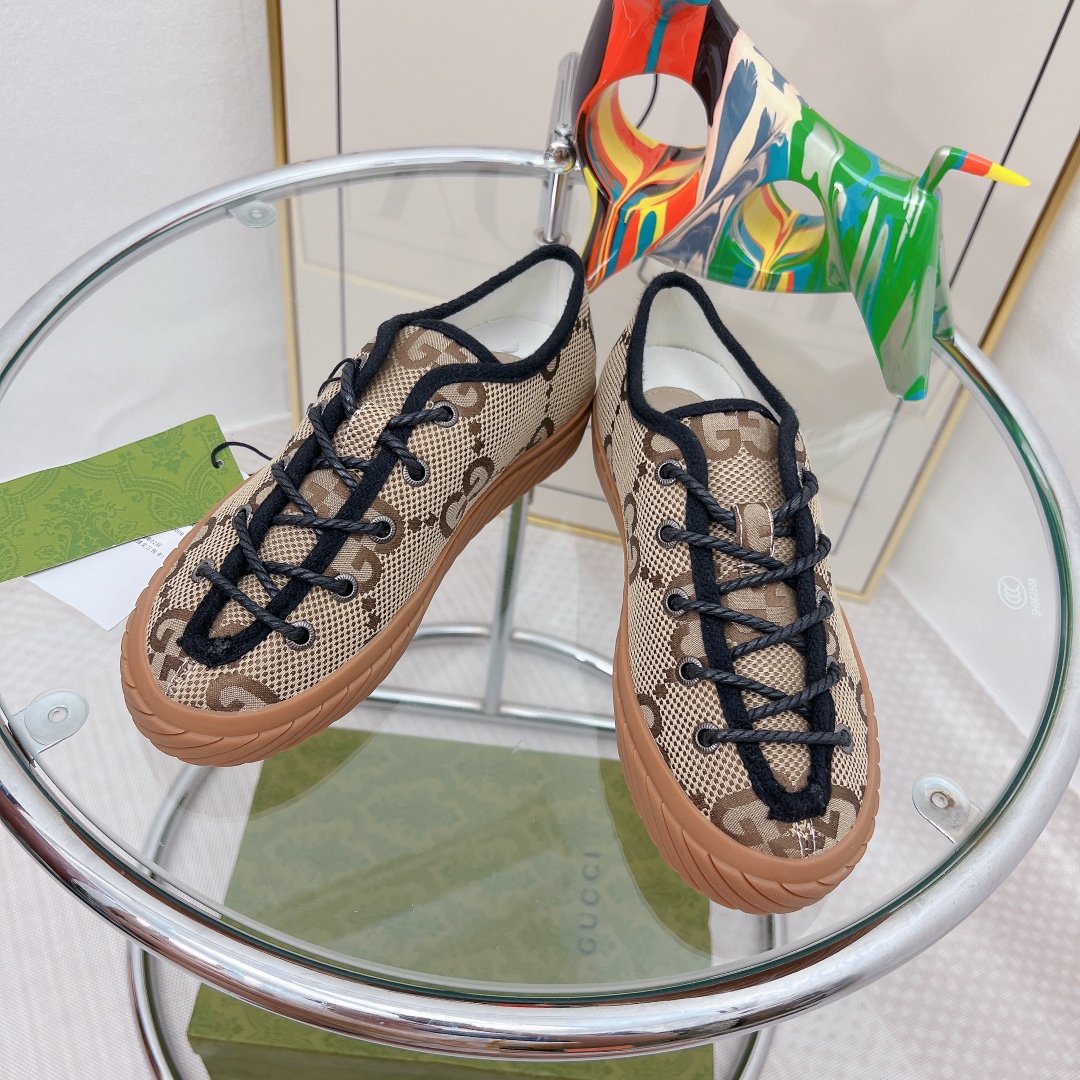 这款女式运动鞋采用 Maxi GG 帆布和标志的经典诠释相结合,向过去和现在致敬材料。运动鞋饰有丝带饰边,突显其纤巧外形。