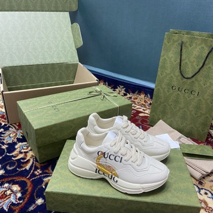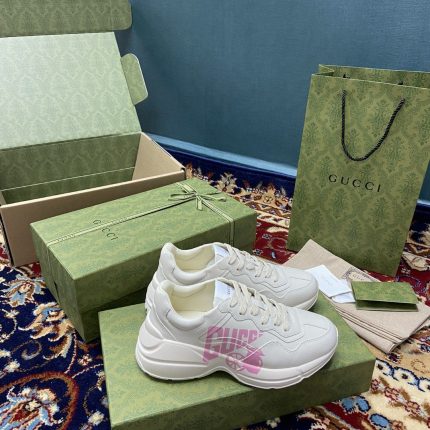 Ryton 的复古廓形以象牙色呈现。带有柠檬印花的对比鞋履,让鞋子焕发活力。标志性运动鞋,为“柠檬 Gucci”的几何元素增添愉悦和现代感。