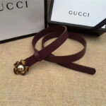 Gucci 新款 原版牛皮 山茶花中间镶珍珠双G 女士腰带 棕红色