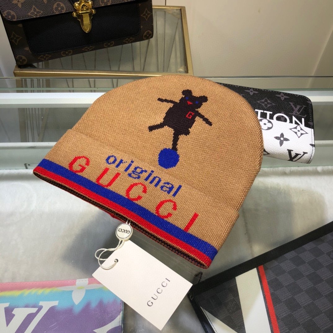 Gucci 棕色羊绒毛线帽