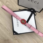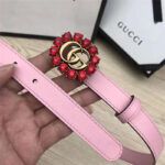 - Gucci 模特走秀款 红色水晶 双G带扣 皮革腰带 粉红
