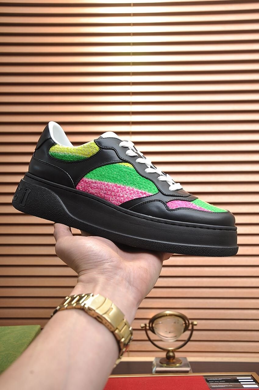 Gucci 男士五彩条纹运动鞋黑色 669582