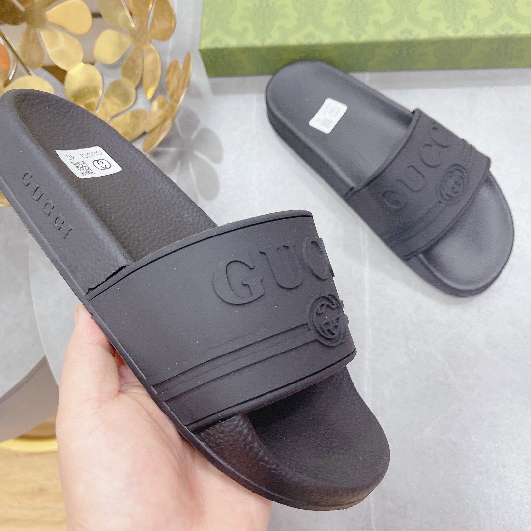 Gucci 男士徽标橡胶拖鞋黑色 522887 JCZ00 1031