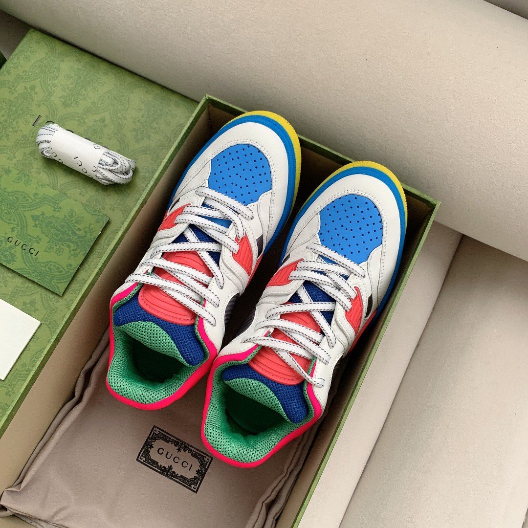 采用 90 年代篮球运动鞋代名词的运动外观,品牌推出系带运动鞋 Gucci Basket 的最新版本。这款高帮款式以独特的特色和细节模仿了球场审美的自我表达。每双鞋均采用色彩鲜艳的面料混合制成,并带有轻微仿旧效果,主要由 Demetra 制成。