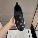 Gucci 男士黑色蜜蜂一脚蹬运动鞋 407364 AXWB0 1076