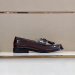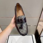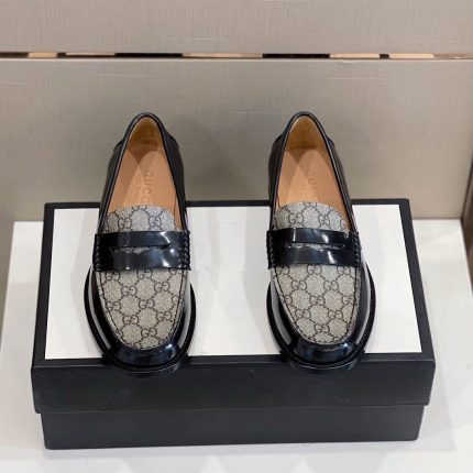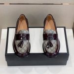 这双鞋是品牌标志性乐福鞋的演变,采用铜色材质混合制成和 GG Supreme 帆布。优雅的风格通过异想天开的流苏细节呈现出百搭的感觉。