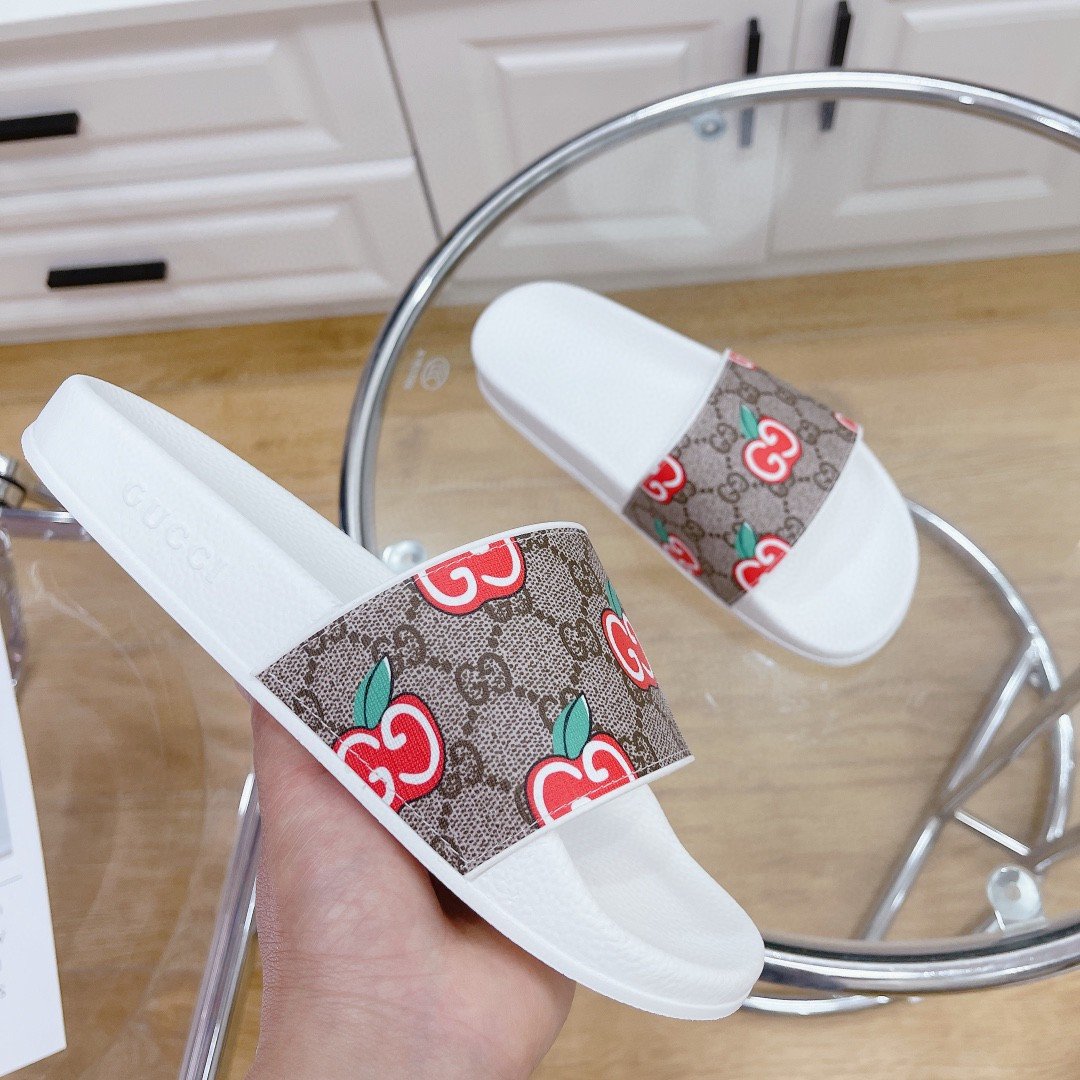 Gucci 男士 GG 苹果白棕色 GG 拖鞋男士 407345