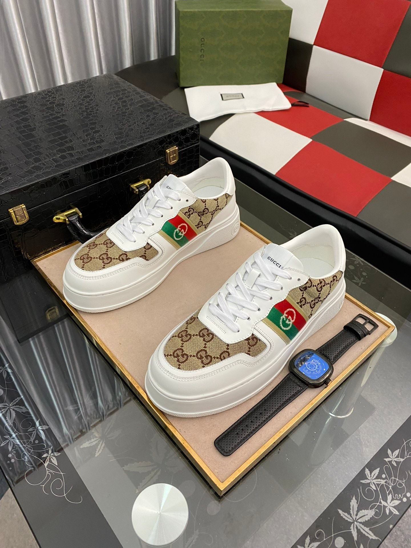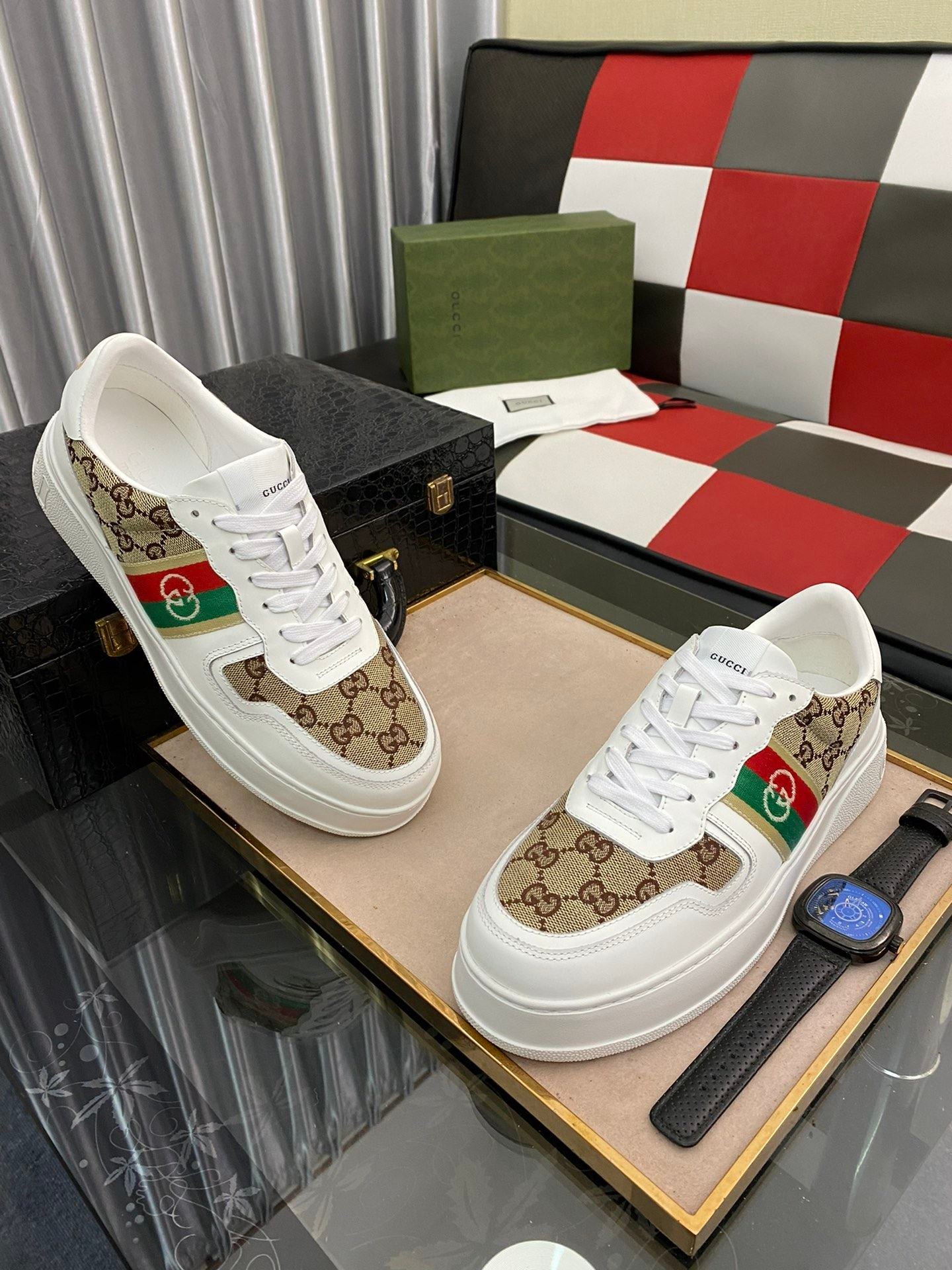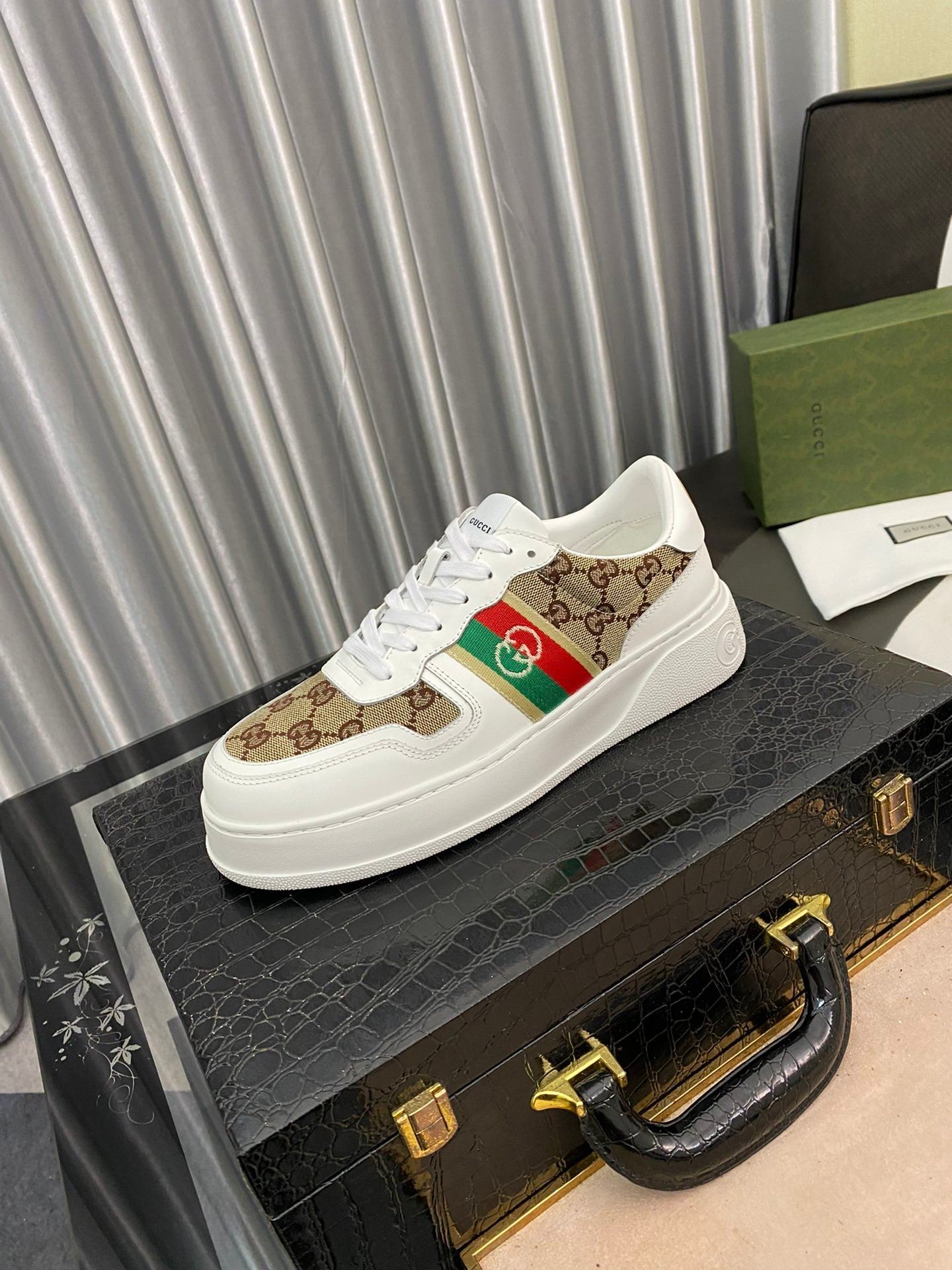 Gucci 男式 GG 刺绣徽标 GG 男士白色和米色织带运动鞋669582
