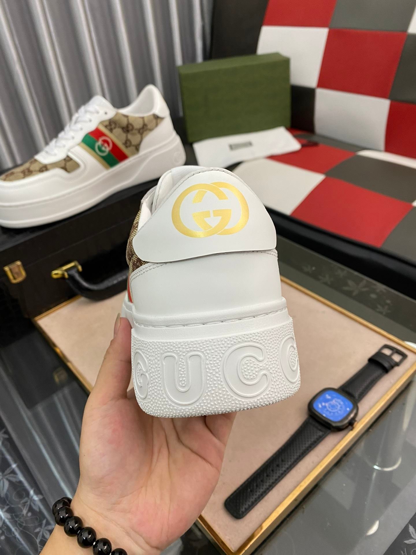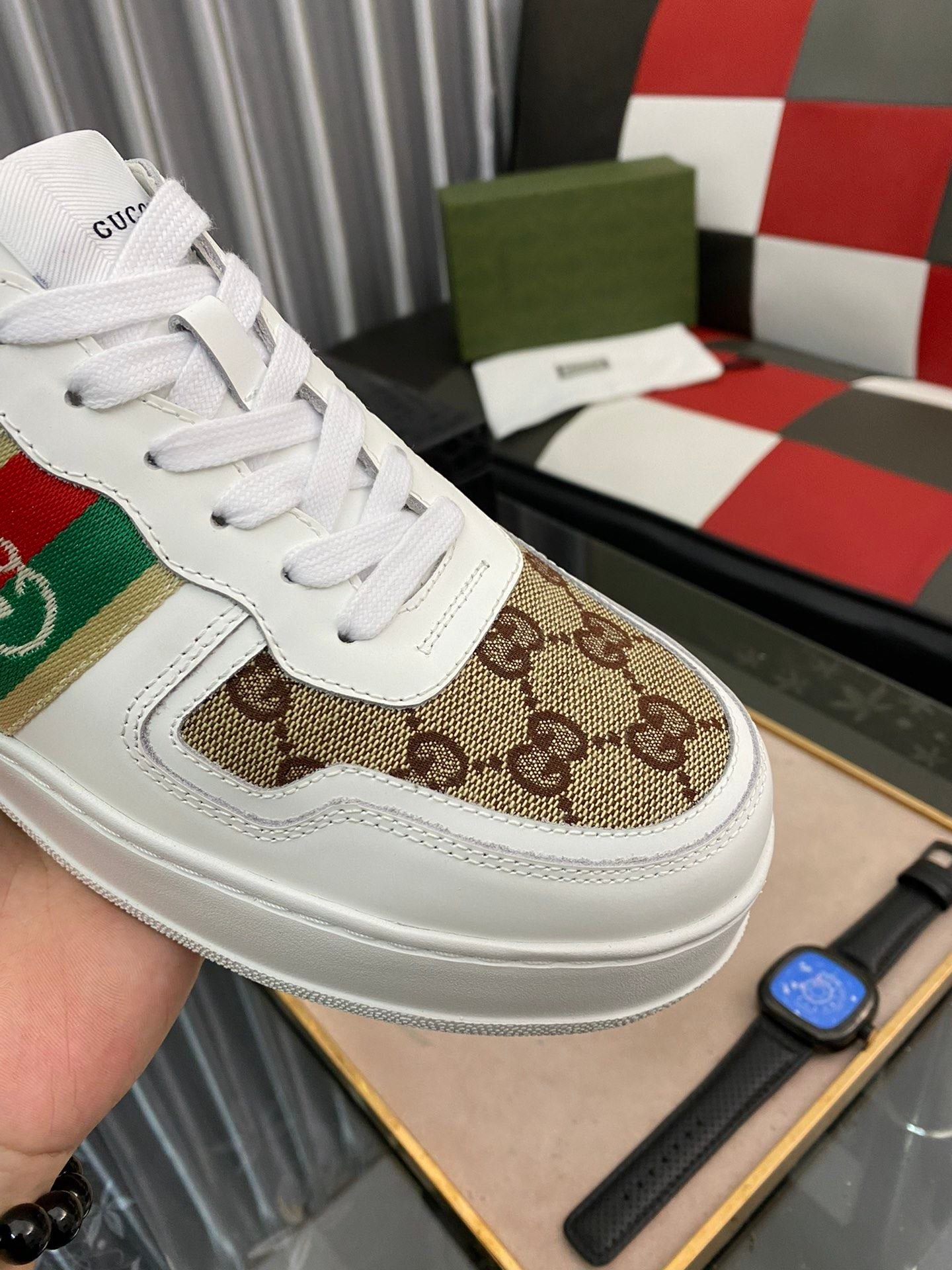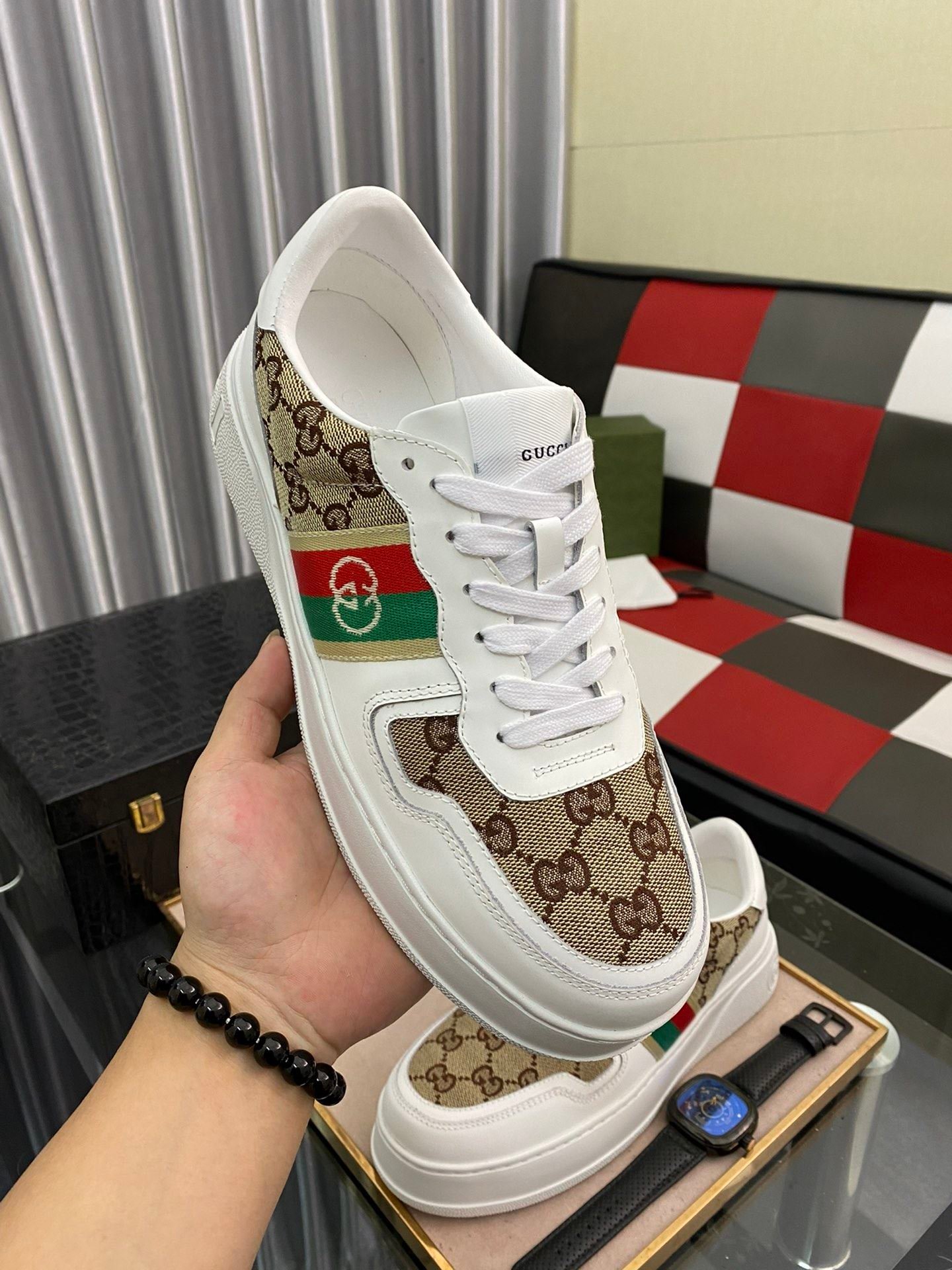 Gucci 男式 GG 刺绣徽标 GG 男士白色和米色织带运动鞋669582