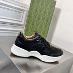 这款 Rhyton 运动鞋采用厚底和笨重结构设计,采用黑色精制而成,并由对比鲜明的白色鞋底定义。新系列 Exquisite Gucci 推出了新版本的鞋子。